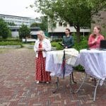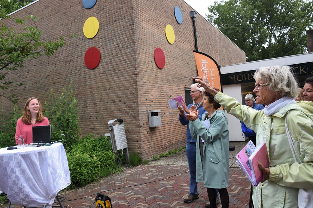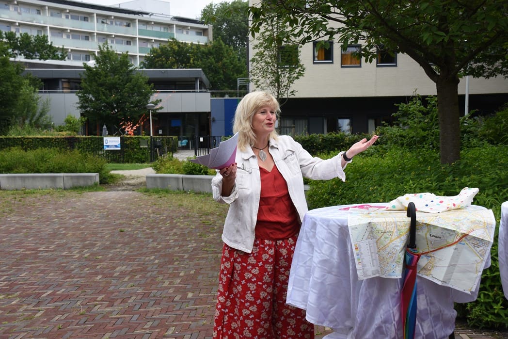 Ook gaf ze de tip mee om eens de weg over te steken en te kijken bij de tijdelijke kunstwerken op begraafplaats Rhijnhof. De kunstwerken staan er als onderdeel van de openluchttentoonstelling Beelden in Leiden.