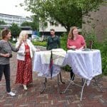 De wethouder had vervolgafspraken, maar de wandelgidsen stonden klaar om gelijk te gaan wandelen.