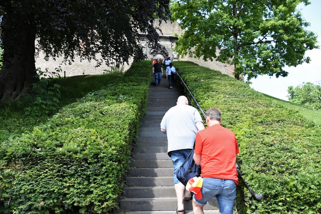 Nadat er gefilmd was op de Nieuwe Rijn gingen we wat drinken bij Koetshuis de Burcht om daarna fris en vrolijk de trap naar boven te nemen 🙁