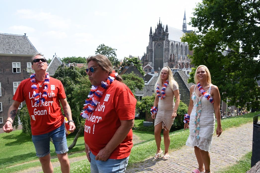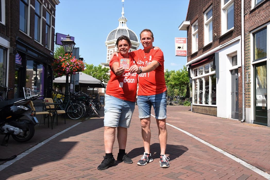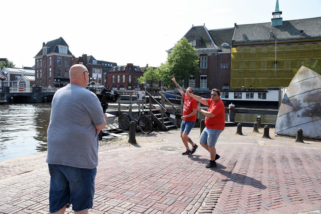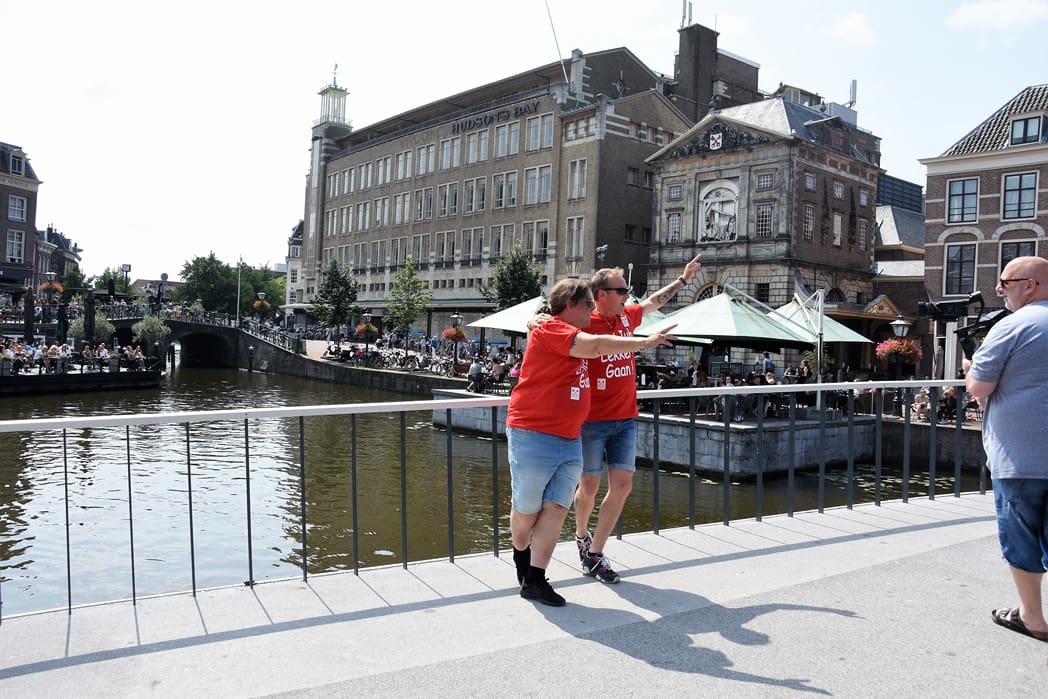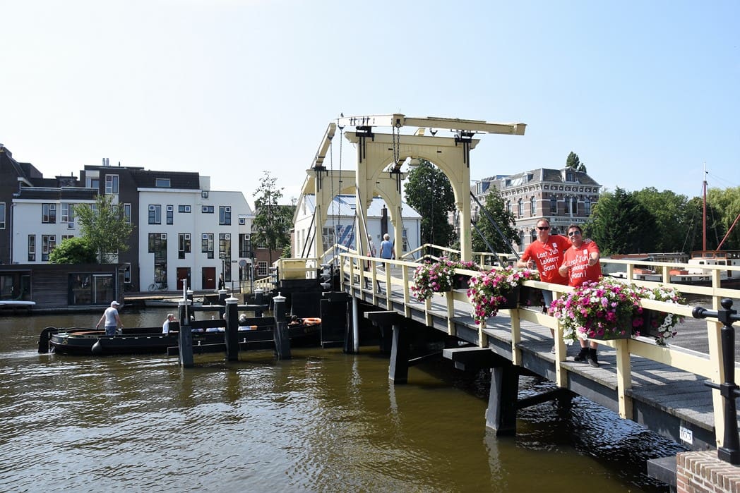 Voorbijgangers en terrasbezoekers stonden even raar te kijken naar het feestje op de brug, maar applaudisseerden wel 🙂