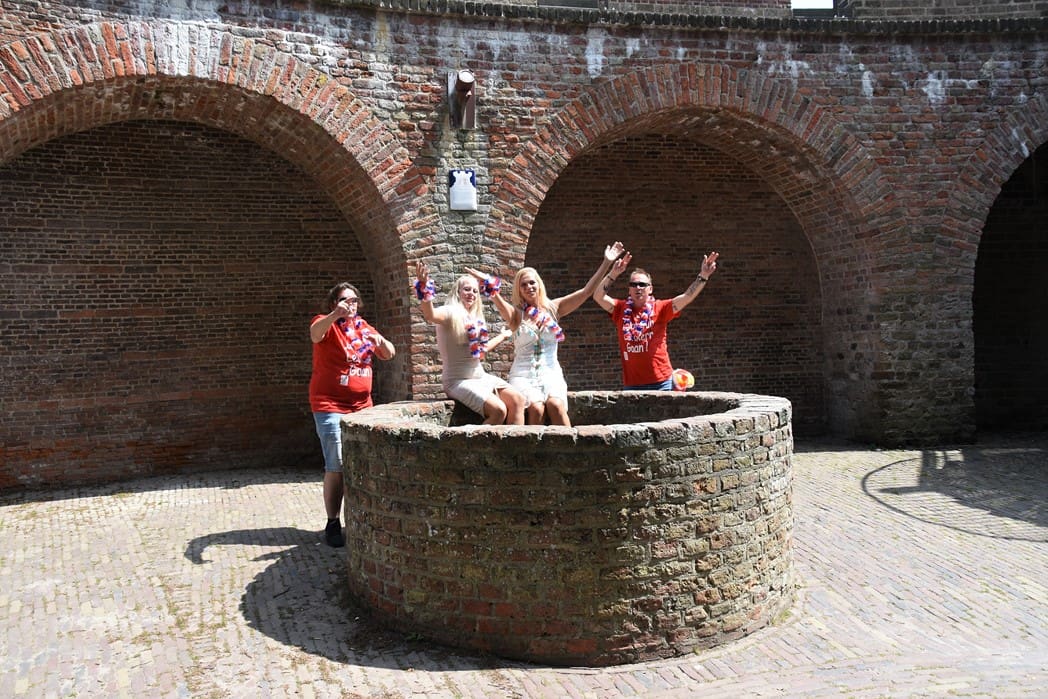 Vanaf de Burchtheuvel heb je een prachtige achtergrond, maar het kan natuurlijk altijd mooier. Twee gezellige danseressen op de achtergrond maakt het nog meer zomers.
