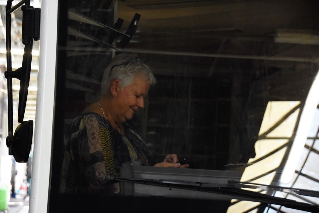Tineke Schutte bleef in de bus zitten en hield haar telefoon standby voor als de bus lekte 🙂