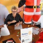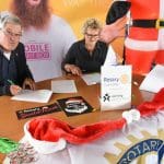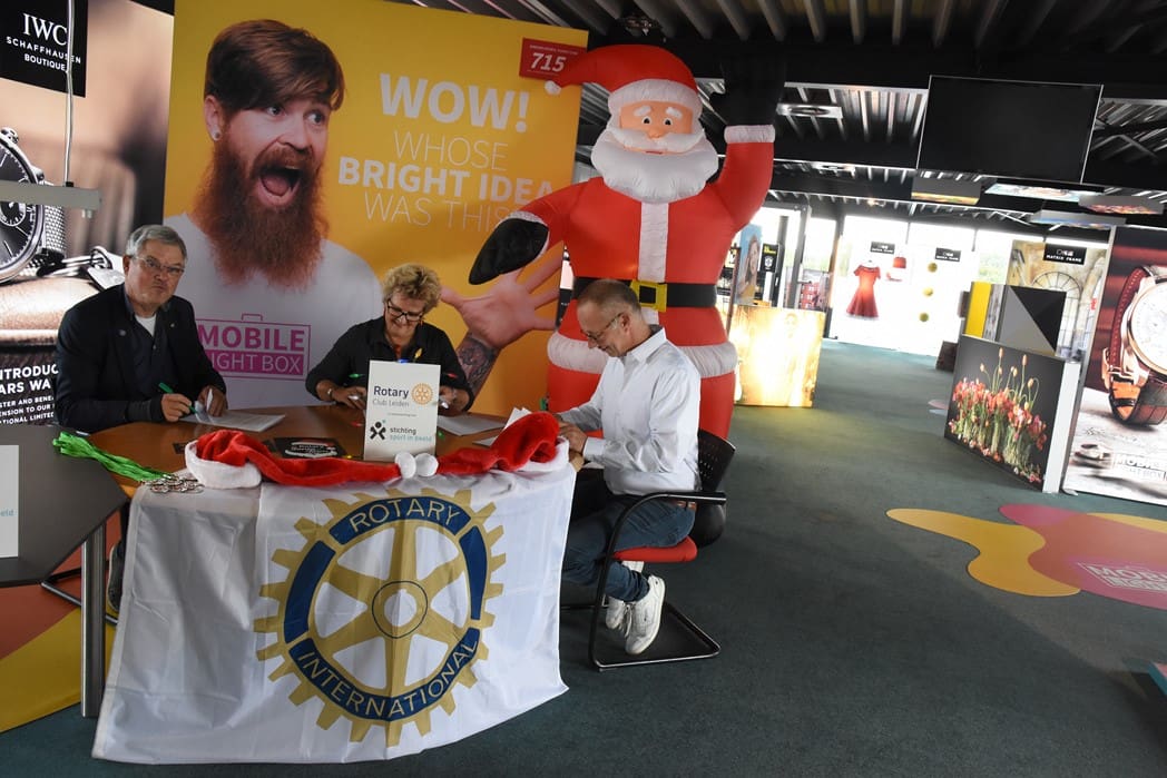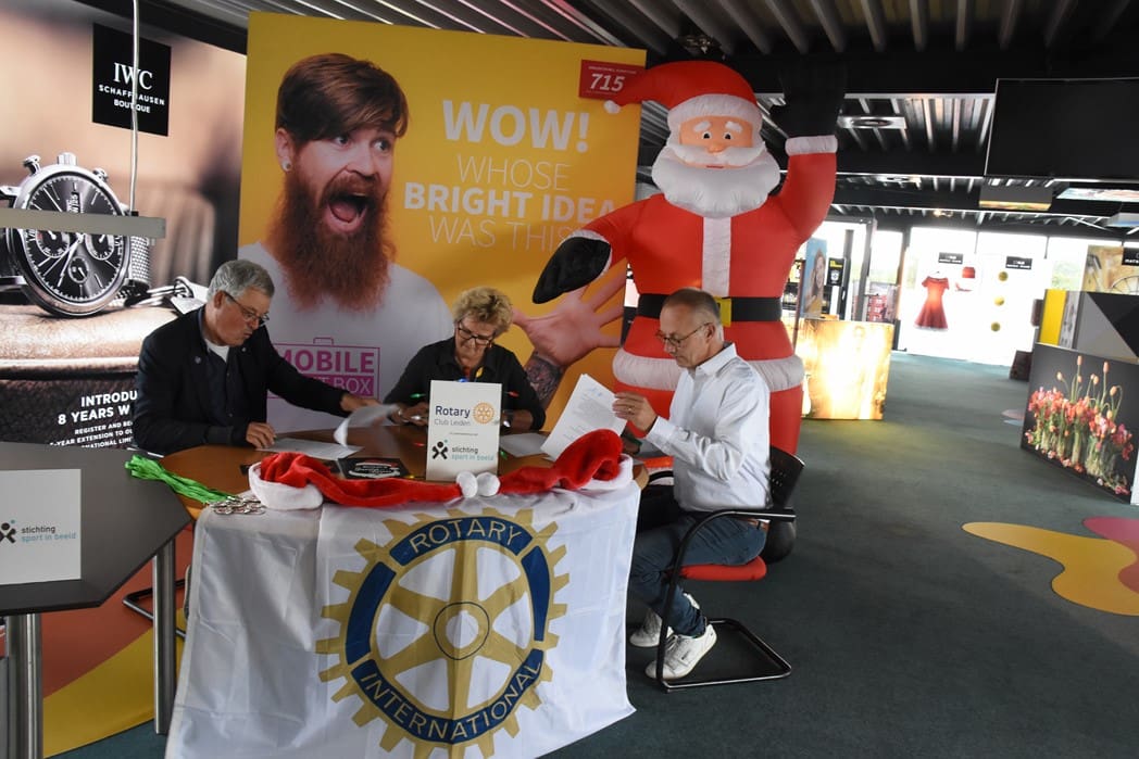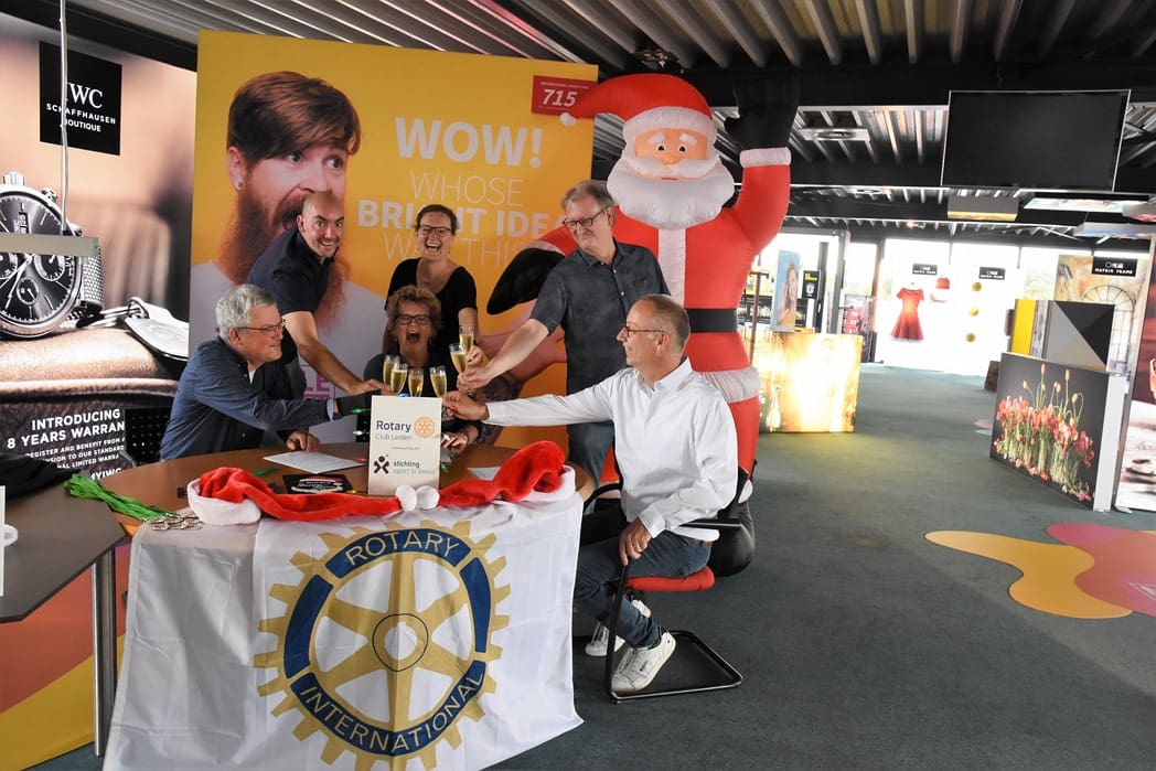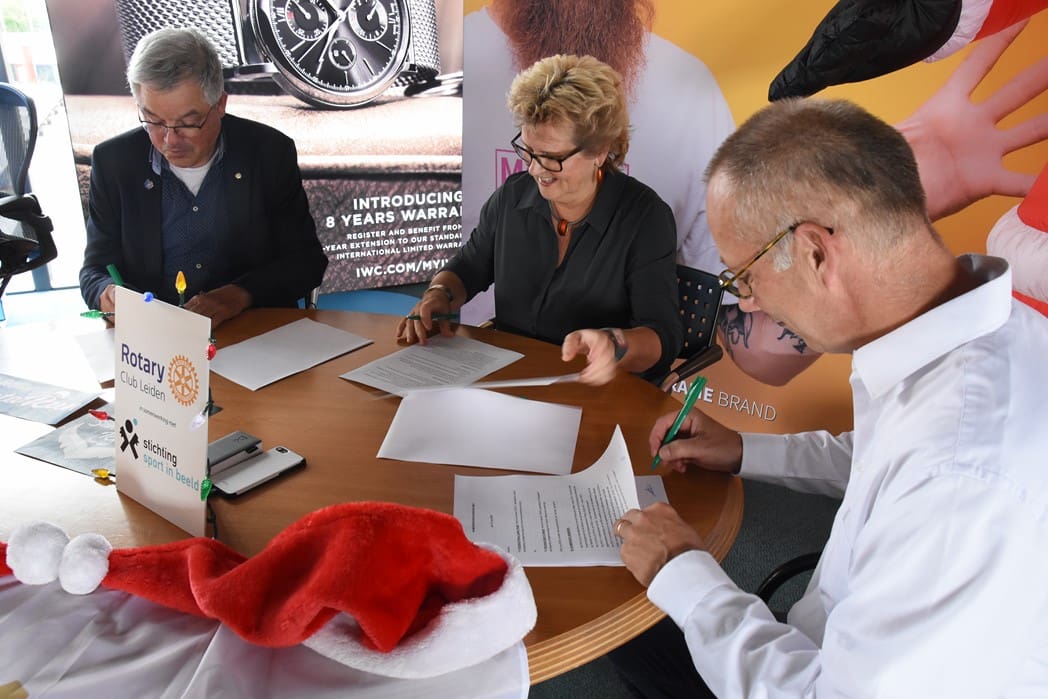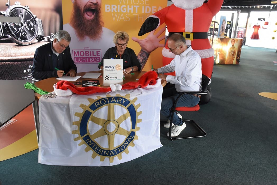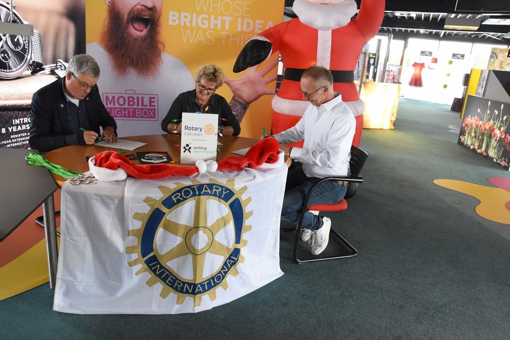 Het was dan ook een geweldig gezicht al die kerstmannen/vrouwen die door Leiden liepen en overal onderweg verrassingen tegenkwamen zoals muziek en andere acts maar ook liepen ze dwars door bijvoorbeeld de firma Hoppezak of museum Boerhaave.De organisatie wordt een steeds omvangrijkere klus, vandaar dat de Rotary Club gaat samenwerken met de Leidse Stichting Sport in Beeld. Vrijdagmiddag werden de handtekeningen onder het samenwerkingscontract gezet.Rotary Club Leiden voorzitter Jos van den Broek, tekende namens de Rotary en Jeroen Weijermars namens Stichting Sport in Beeld. Evenementen als de Santa Run gaan vallen onder de onlangs opgerichte Stichting Rotary Leiden Helpt, waarvan Rotarylid Anita Mantel voorzitter is.