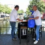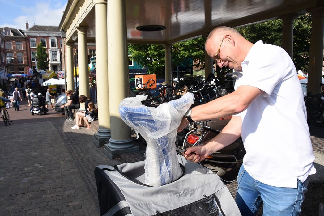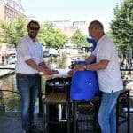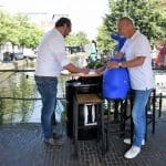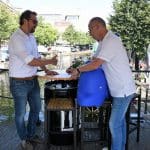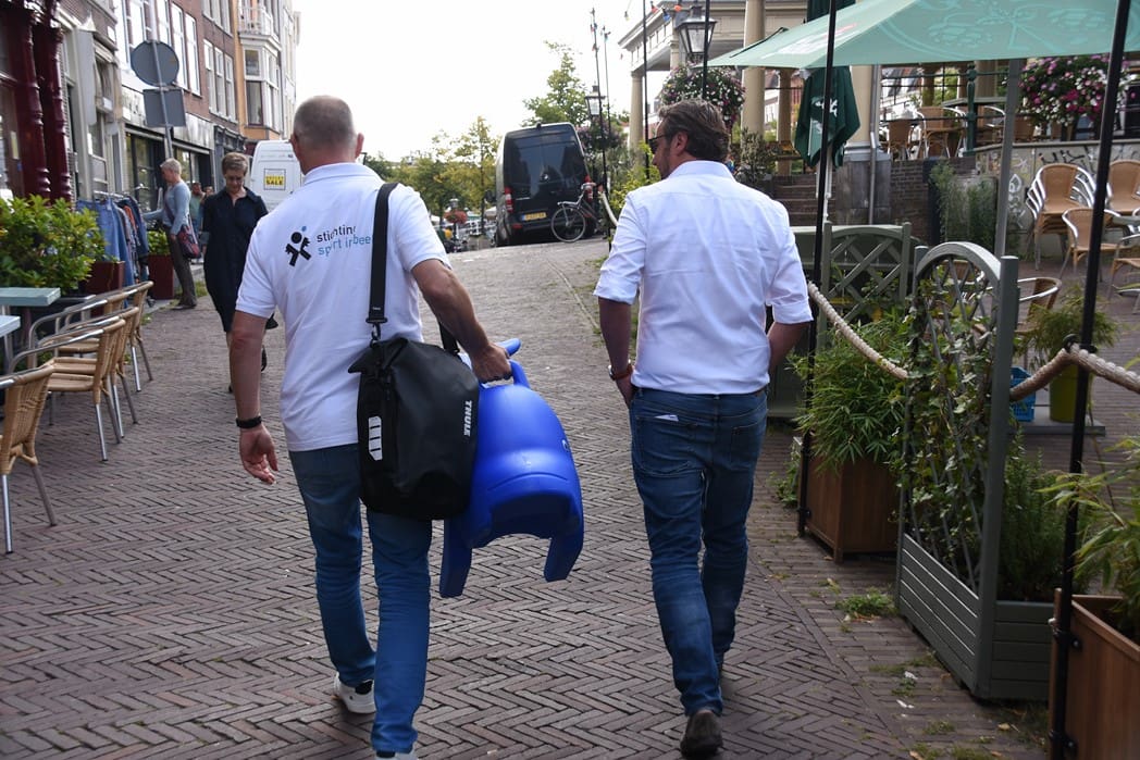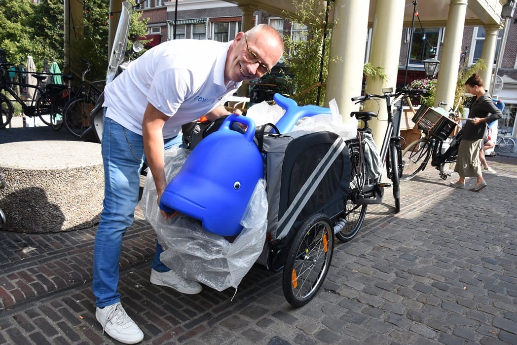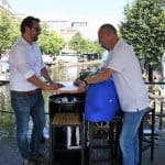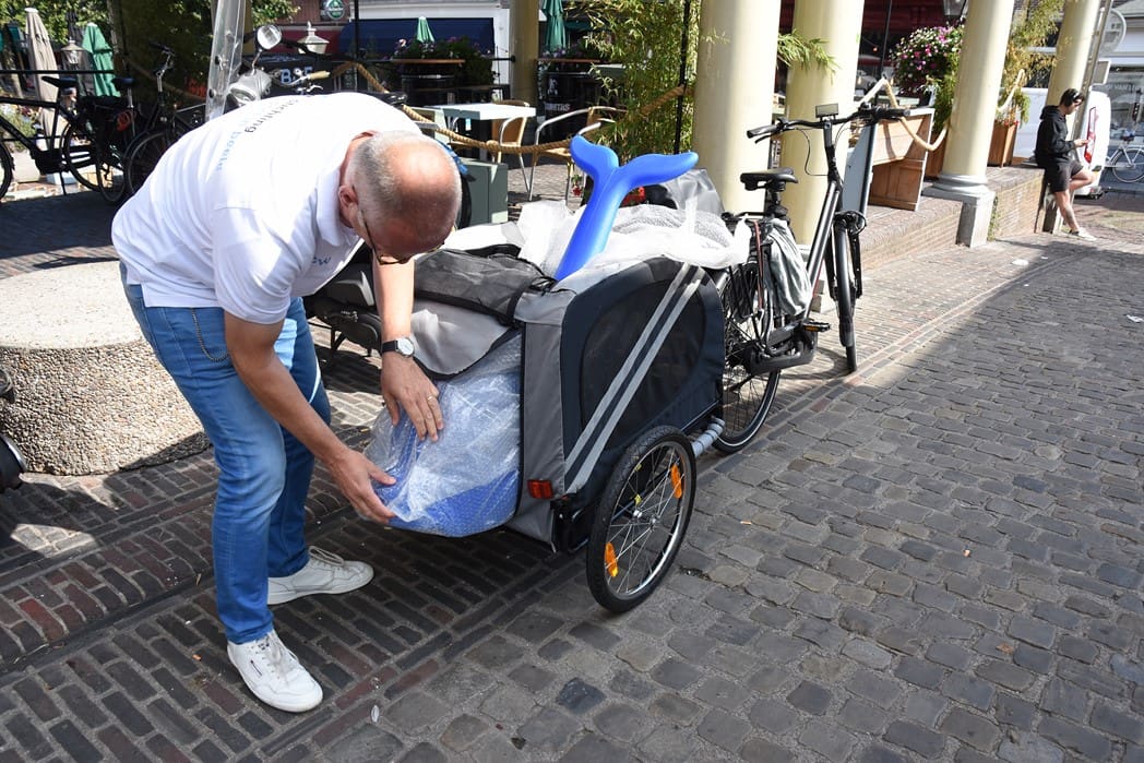 Eerlijk gezegd is het gelukkig nog niet zover en genieten we nog even van wat eigenlijk zomer zou moeten zijn. Dit jaar wordt de ijsbaan niet meer georganiseerd door het Centrum Management, maar door de Stichting Sport in Beeld. Vorige week, op een van de weinige mooie dagen, werd de overdracht officieel bekrachtigd door Siebe Winnubst van het Centrum Management en Jeroen Weijermars aanjager van de Stichting Sport in Beeld. Jeroen had een aanhanger achter zijn fiets waar iets raars uitstak.