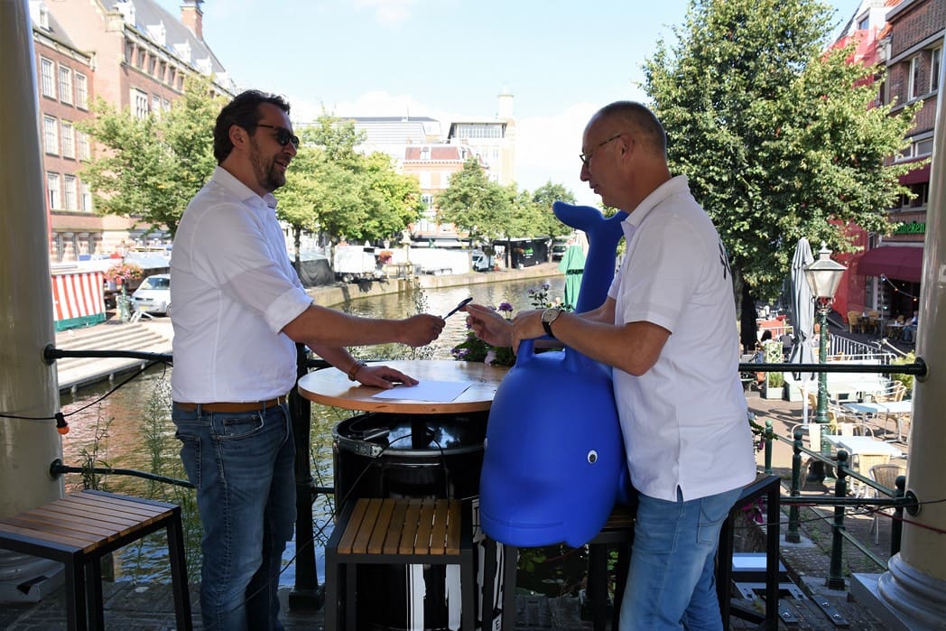 Onder het toeziend oog van Flipperrr werden de overdrachtspapieren getekend.