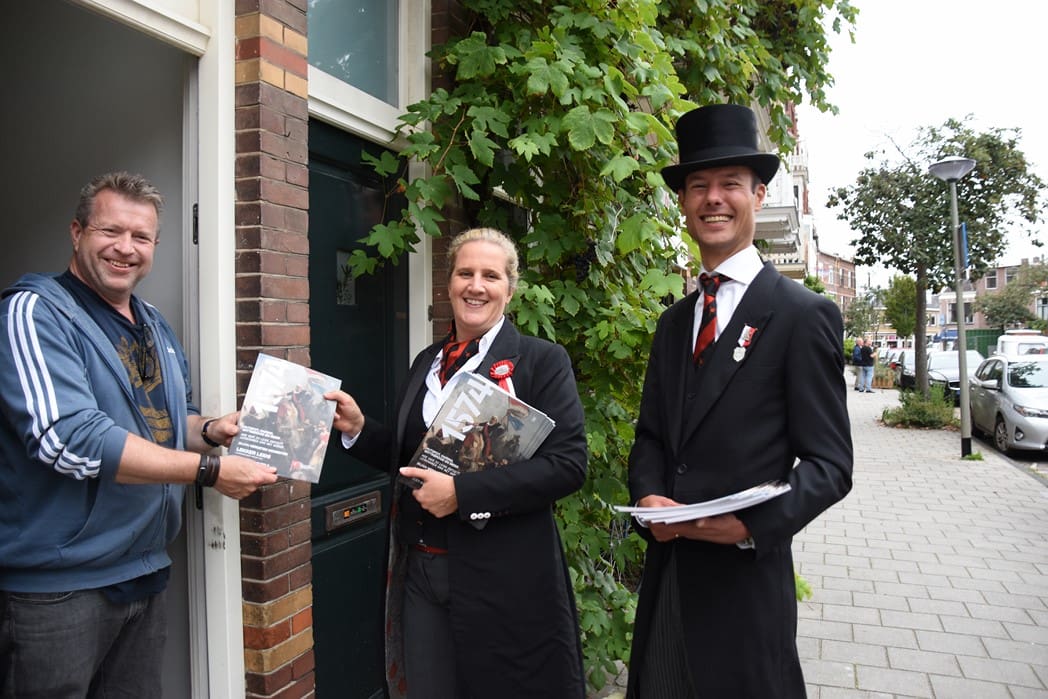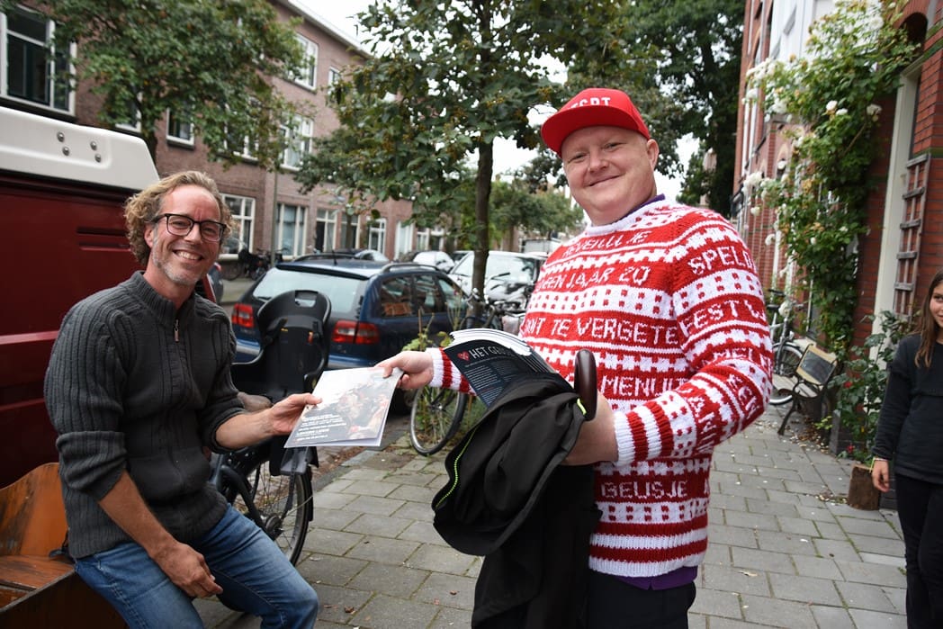Een aantal leden van de Commissie PR stond klaar om persoonlijk huis-aan-huis de magazines langs te brengen. Eigenlijk is het blad alleen voor de leden, maar het is natuurlijk wel leuk om alle bewoners van Drie Octoberstraat er eentje aan te bieden.