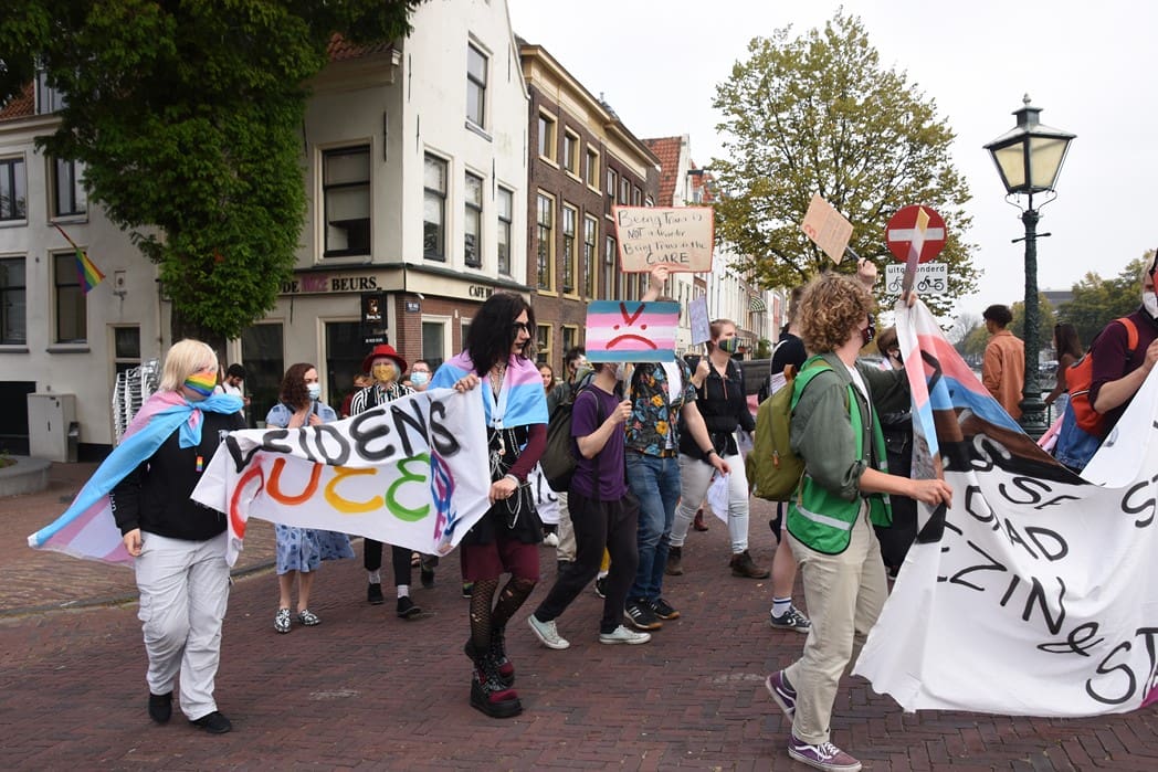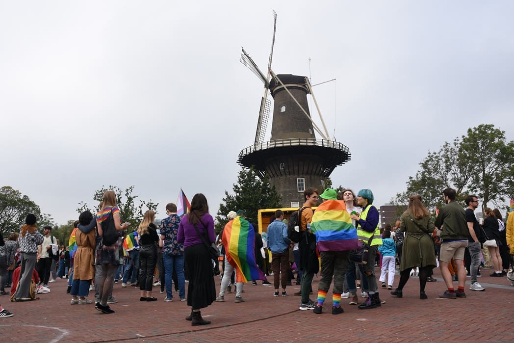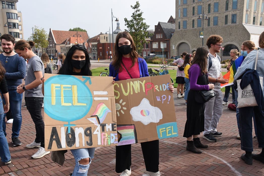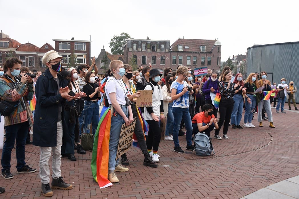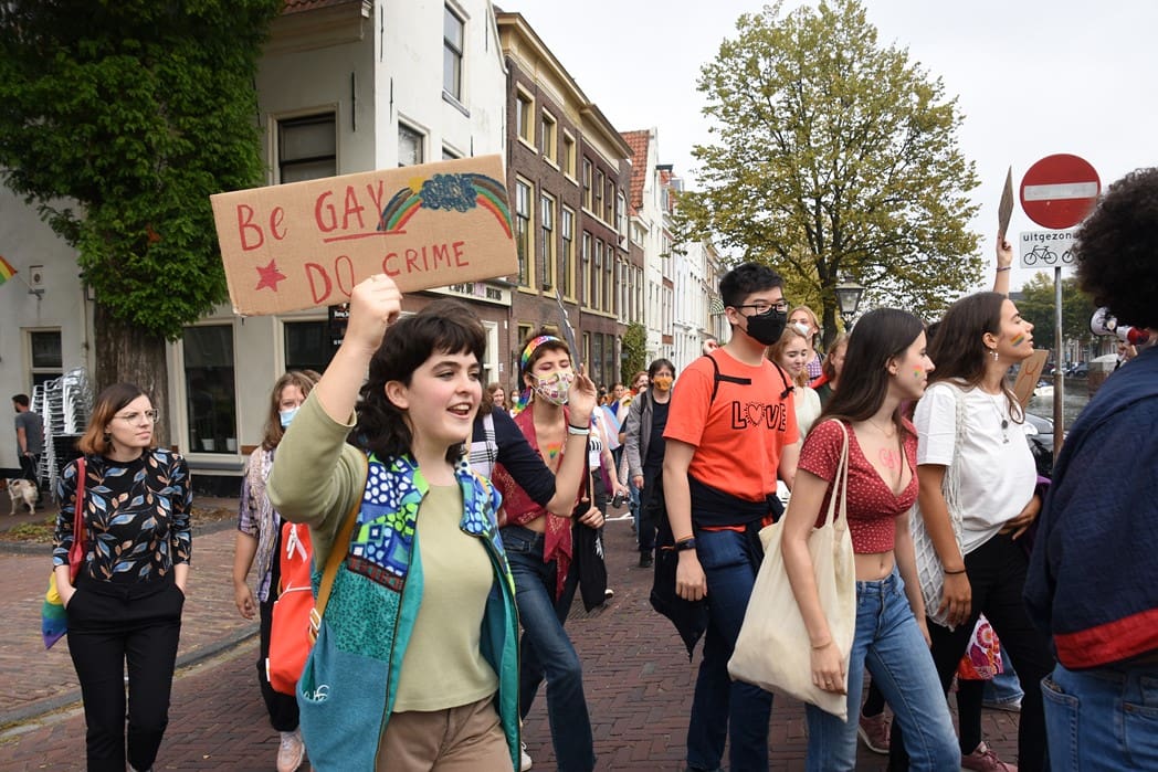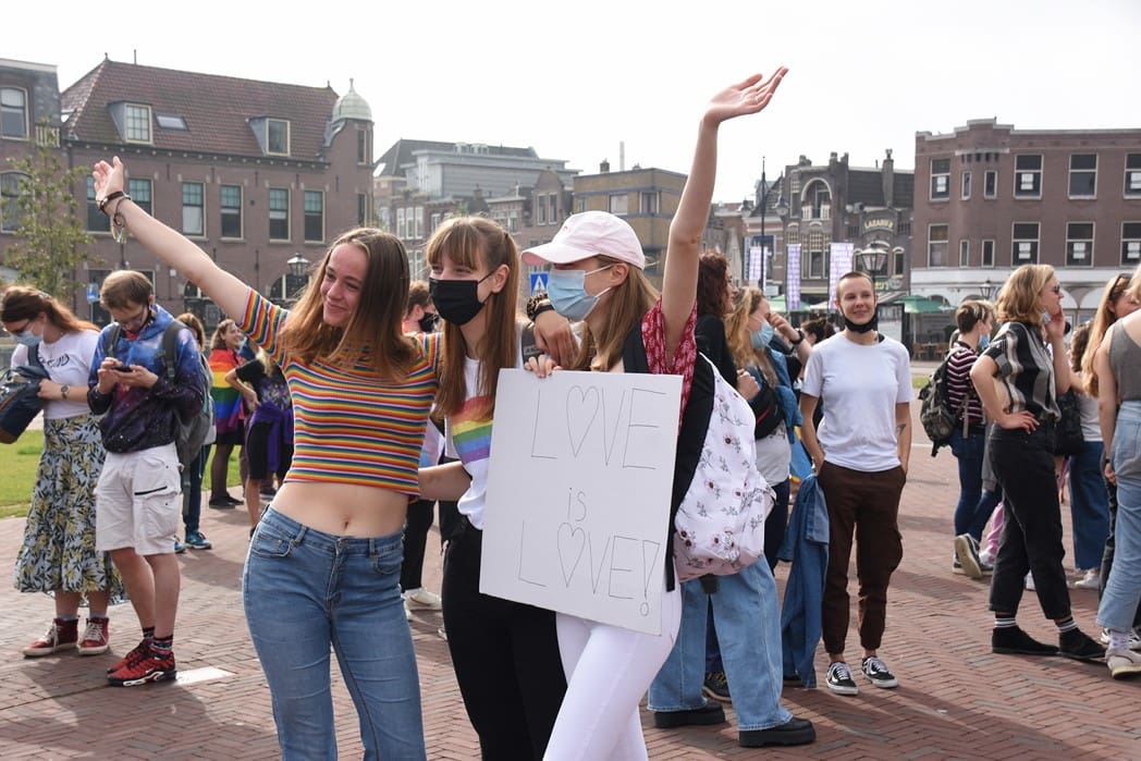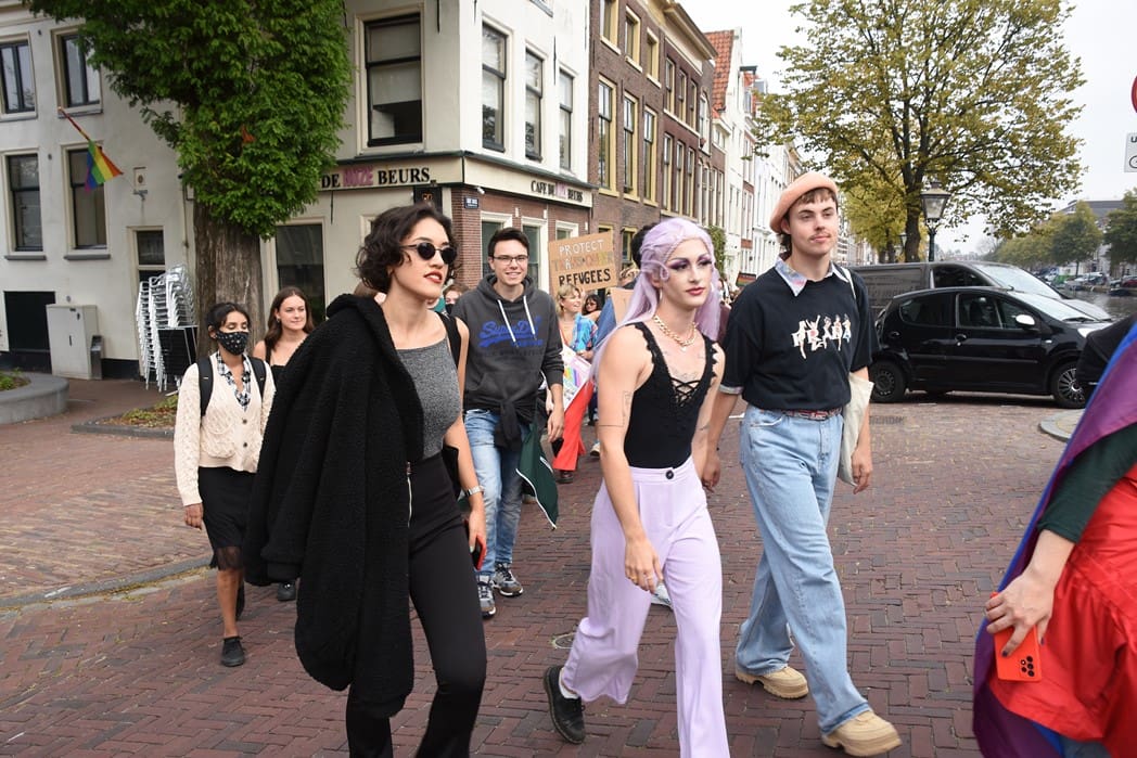 Zaterdagmiddag kleurde Leiden in de LHTBIQ+ kleuren, ruim 250 demonstranten kwamen naar de Lammermarkt voor de Queer Pride March.