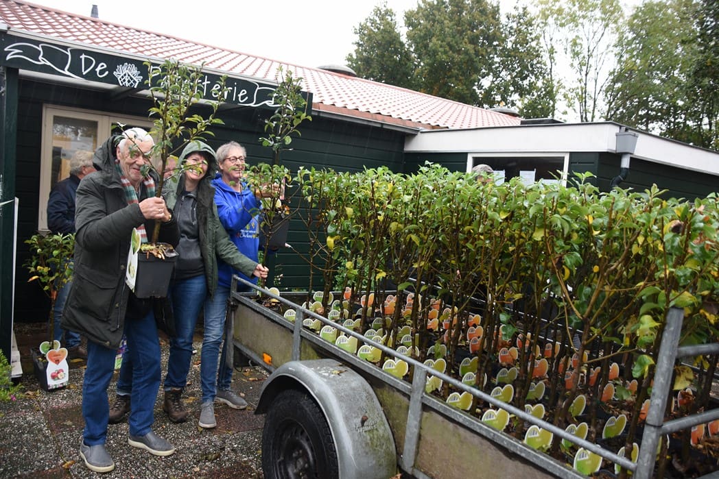 Buiten stond een aanhanger vol fruitboompjes. Alle leden mochten een boompje meenemen en wie weet kan je hier over een paar jaar overal appels en peren plukken.