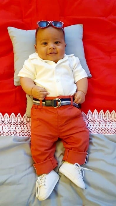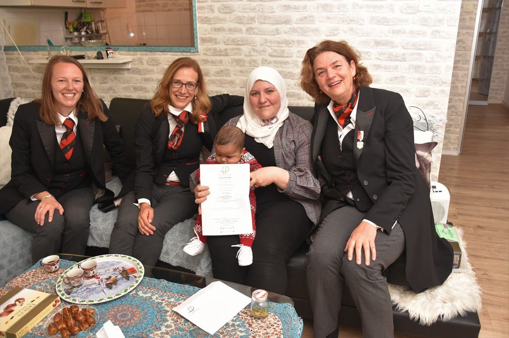 Moeder Shadi vertelde dat ze pas anderhalf jaar in Leiden woont, maar zich zo thuis voelt in Nederland en Leiden dat ze haar zoontje al helemaal in onze tradities opvoedt. Nog maar net geboren poseerde hij van de zomer tijdens het EK Voetbal al in het oranje. Vandaar dat hij met 3 oktober rood-wit gekleed was.