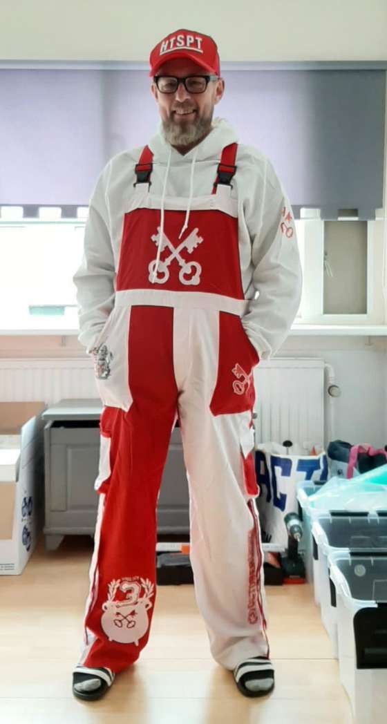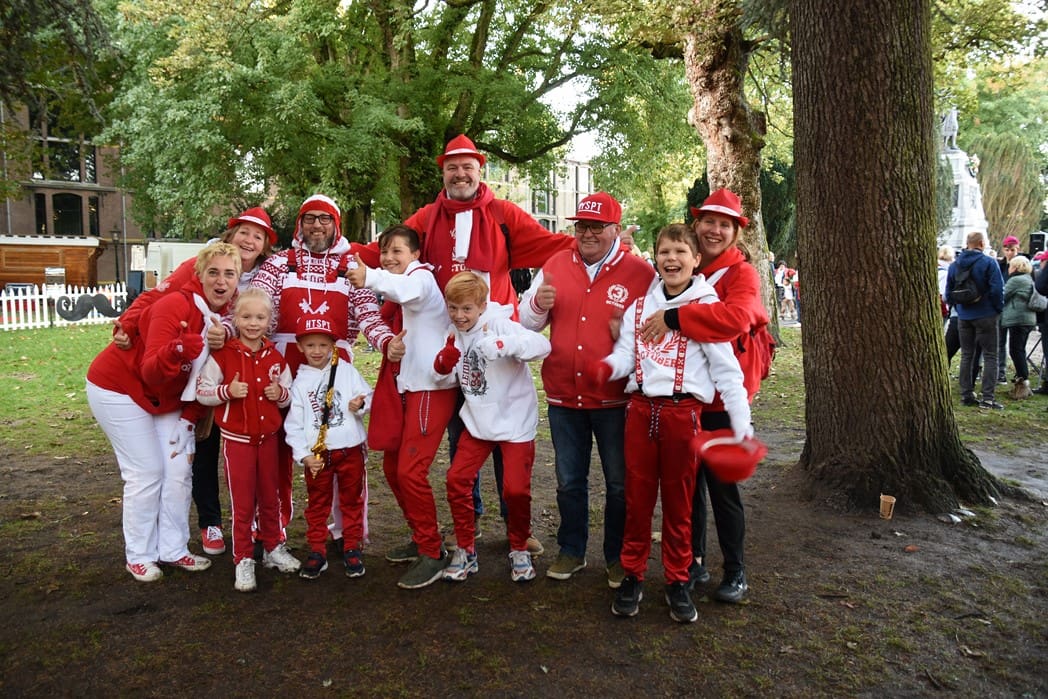 Er was nog een groepsprijs, Danny en Pascal gaan elk jaar met een hele groep op stap en allemaal in rood-wit gekleed. Ze zijn in het verleden al eens genomineerd geweest voor een prijs. Ik zag ze in het van der Werfpark na het Koraal en nam de foto en raadde ze aan hem in te sturen voor de wedstrijd. Om deze groep kan je ook bijna niet heen, alles zit er in. Hoedjes, petjes, bretels, schoenen, jacks, shawls, diverse hoody’s, handschoenen en eigen ontwerpen. Kortom vrijwel alles wat er maar te vinden is op 3 oktobergebied zit in deze foto.