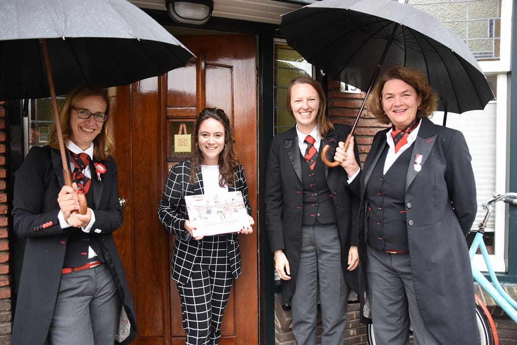 Met 2 en 3 oktober loopt het grootste deel van Leiden rood-wit gekleed of heeft tenminste iets rood-wits aan. Ook dit jaar werd er weer een 3 oktober Rood-Wit wedstrijd gehouden. Geen fotograaf die voor de optocht uitliep om rood-witte toeschouwers te fotograferen, want er was geen optocht, maar iedereen kon een foto insturen van zijn of haar rood-witte outfit. Er werden behoorlijk wat foto’s ingestuurd en voor de jury was het echt een moeilijke klus om de winnaars te selecteren. Het gaat niet alleen om rood-wit een foto moet ook iets vertellen of vragen oproepen. Zaterdagmiddag gingen 3 October Vereeniging  PR Commissieleden Femke Eisma, Laila Hollander en Annette Los bij de prijswinnaars langs om ze te verrassen met hun prijs.