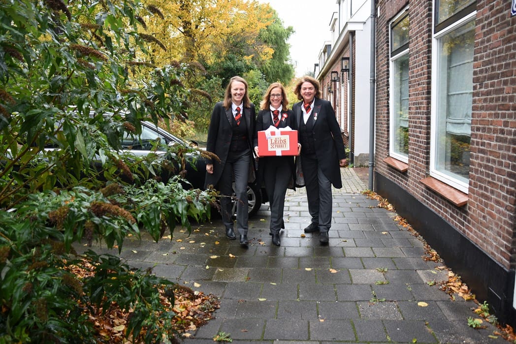 Ze kregen een Leids Pakket aangeboden door het Leidse Winkeltje. Het pakket zat boordevol Leidse cadeautjes.
