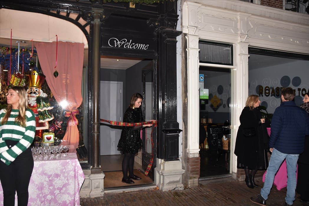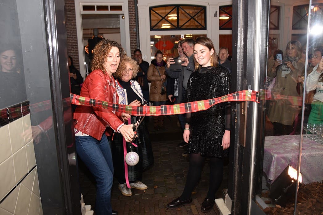 Om 18.00 werd de zaak geopend, Sophia hing nog even snel een lint op.
