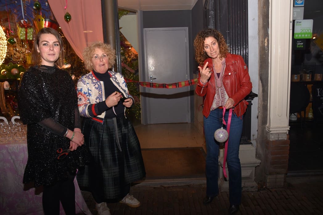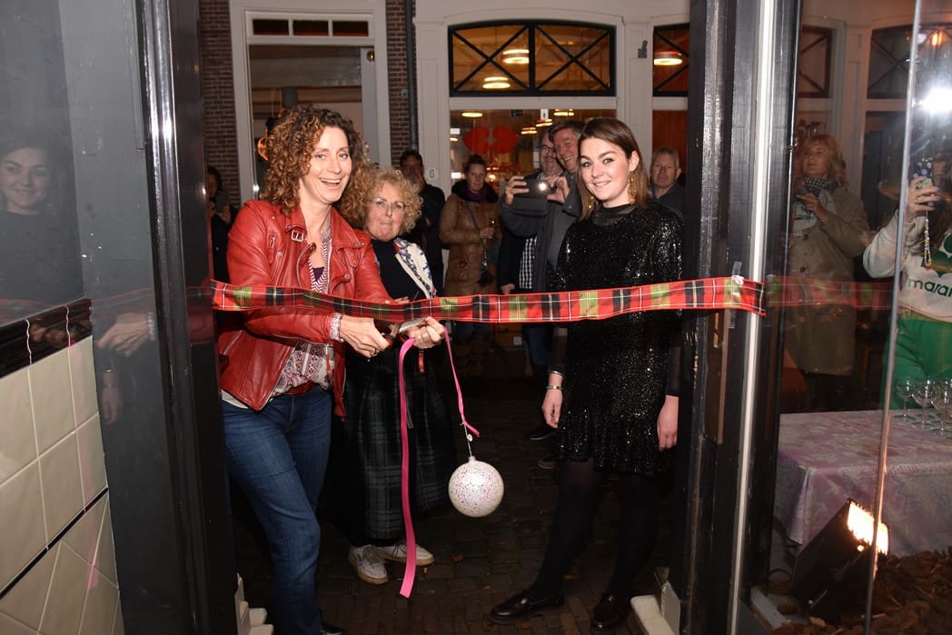 Met het kapot gooien van een kerstbal, scherven brengen geluk, en het doorknippen van het kerstlint opende Pia Douwes de winkel.