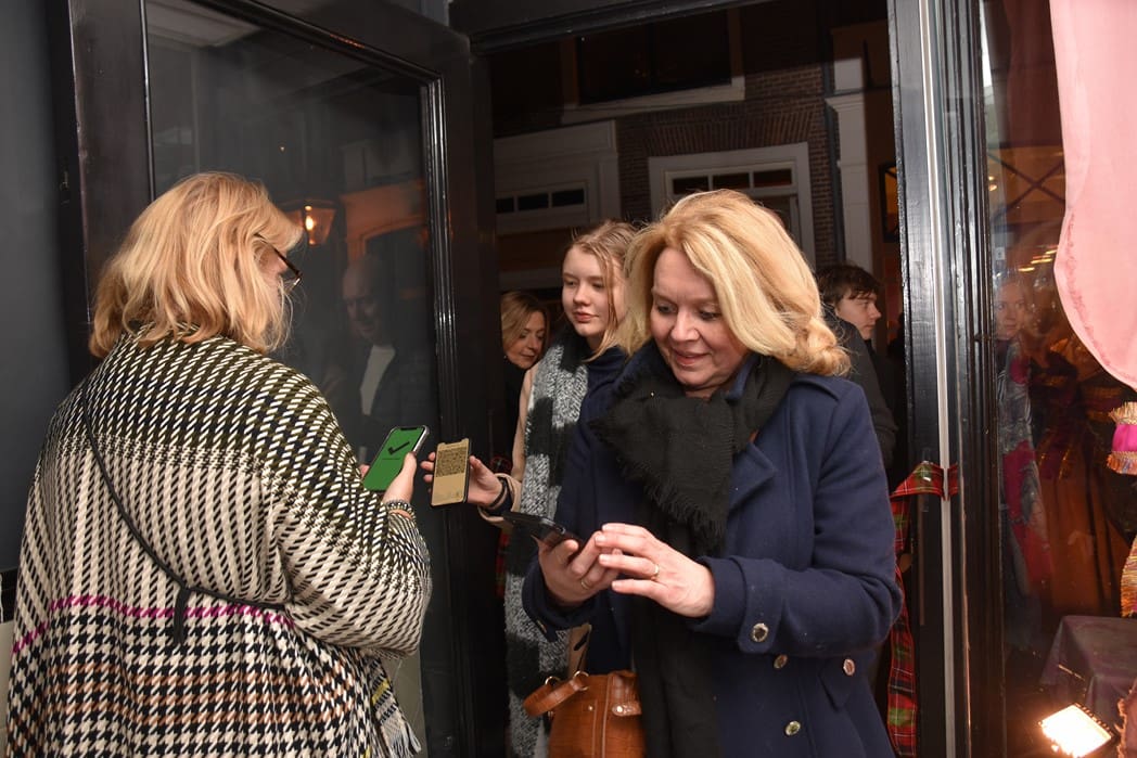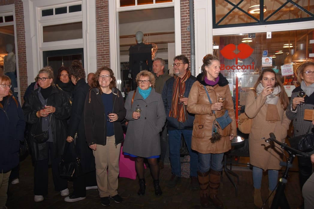 In afwachting van de opening was het gezellig druk voor de deur van de winkel.
