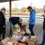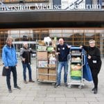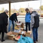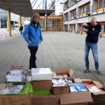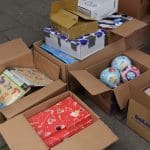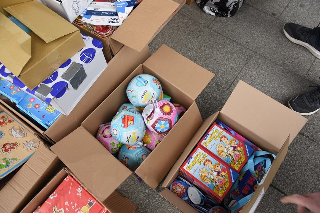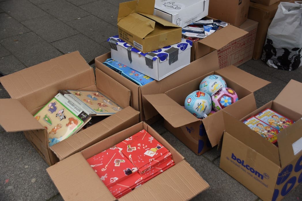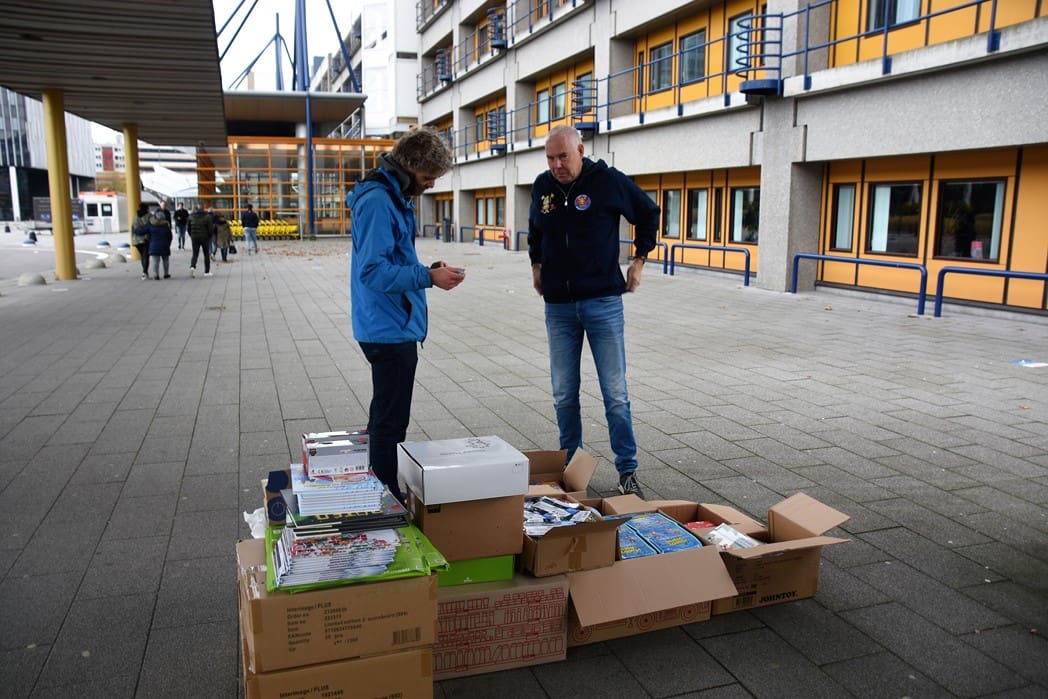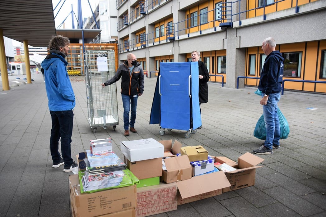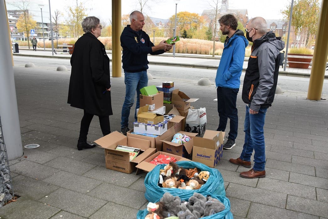 Het waren zoveel cadeautjes dat Bianca haar man Dick ook maar even kwam helpen om alles in rolcontainers te stapelen.