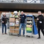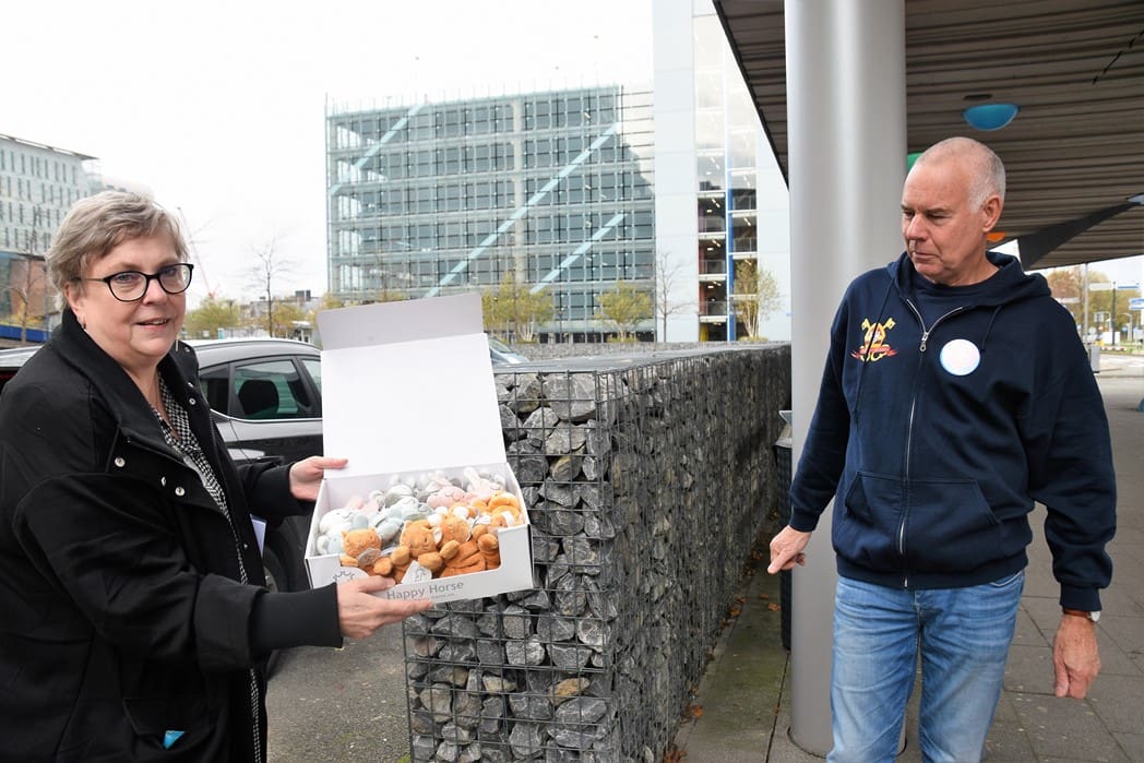 Chef de clinque Robin Bertels en Klinisch ondersteunend medewerker Bianca Meijer namen de cadeautjes in ontvangst.