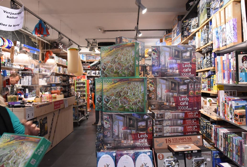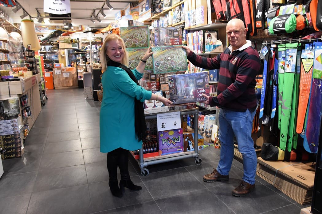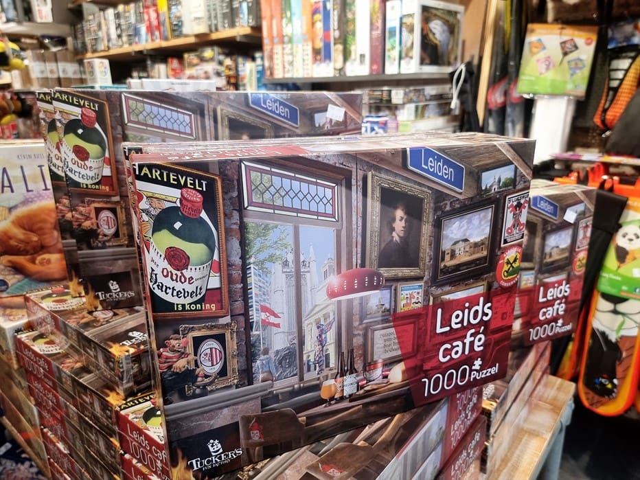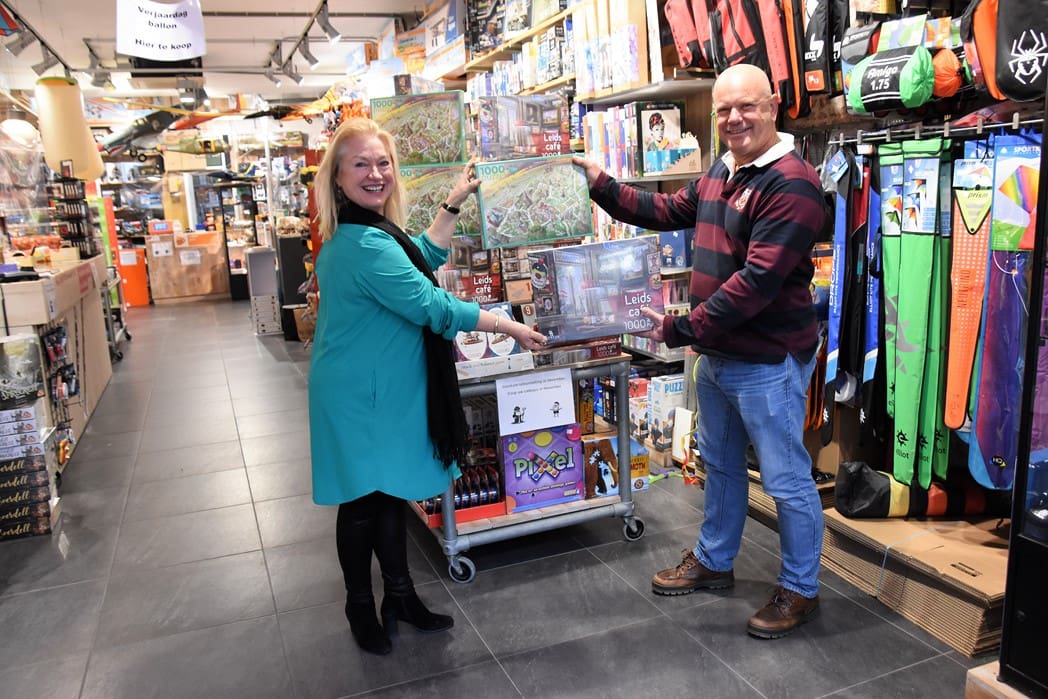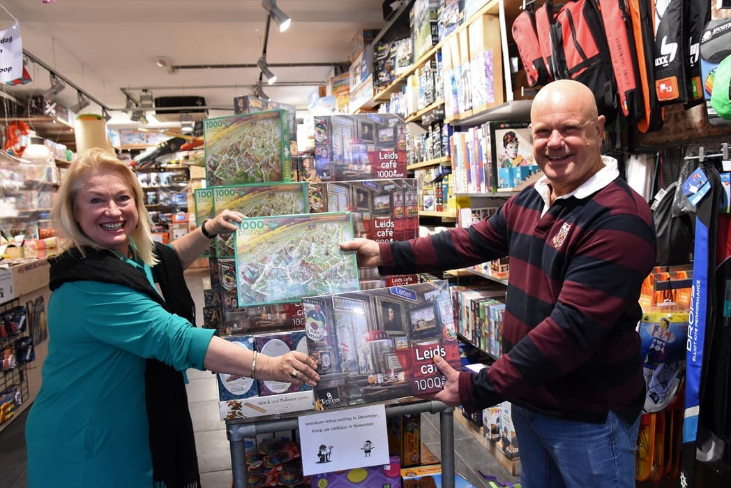 Vanaf nu staan de puzzels van Oegstgeest en Leiden broederlijk naast elkaar in de winkel.
