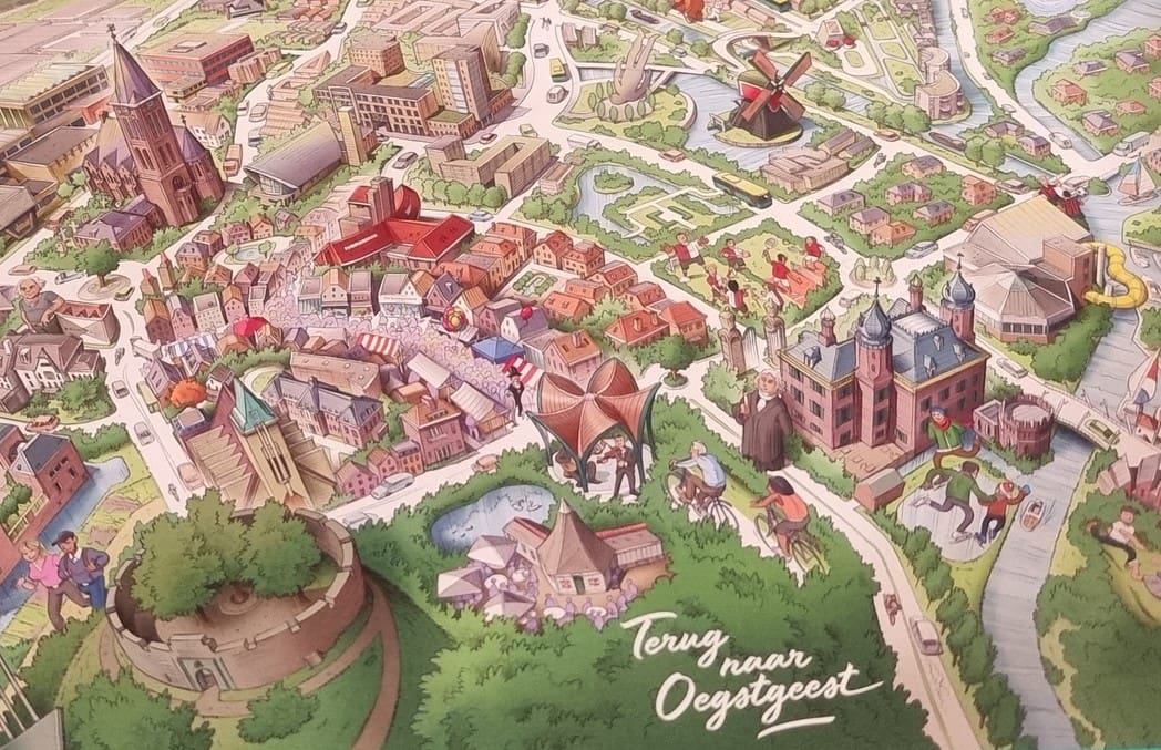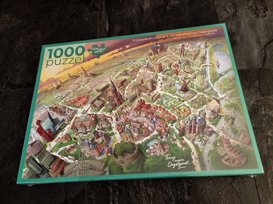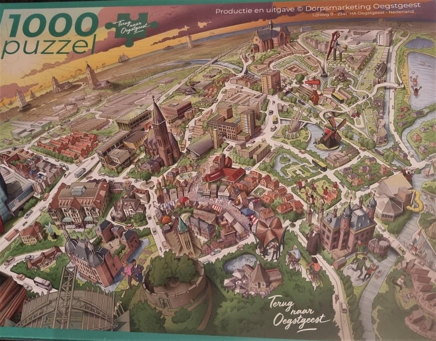 In Leiden zijn foto’s gebruikt, in Oegstgeest is gekozen voor een tekening van het dorp. Op de puzzel staan ook beeldbepalende plekken in de streek, omdat Oegstgeest zich erg verbonden voelt met de streek.