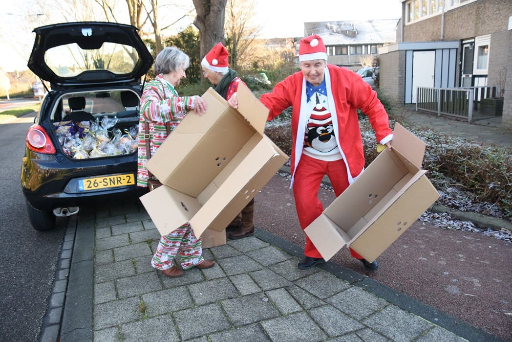 In de Merenwijk was het bestuur van de Zonnebloem afdeling Noord en Merenwijk ook druk bezig met het uitsorteren van kerstpakketten voor de ouderen in de buurt.