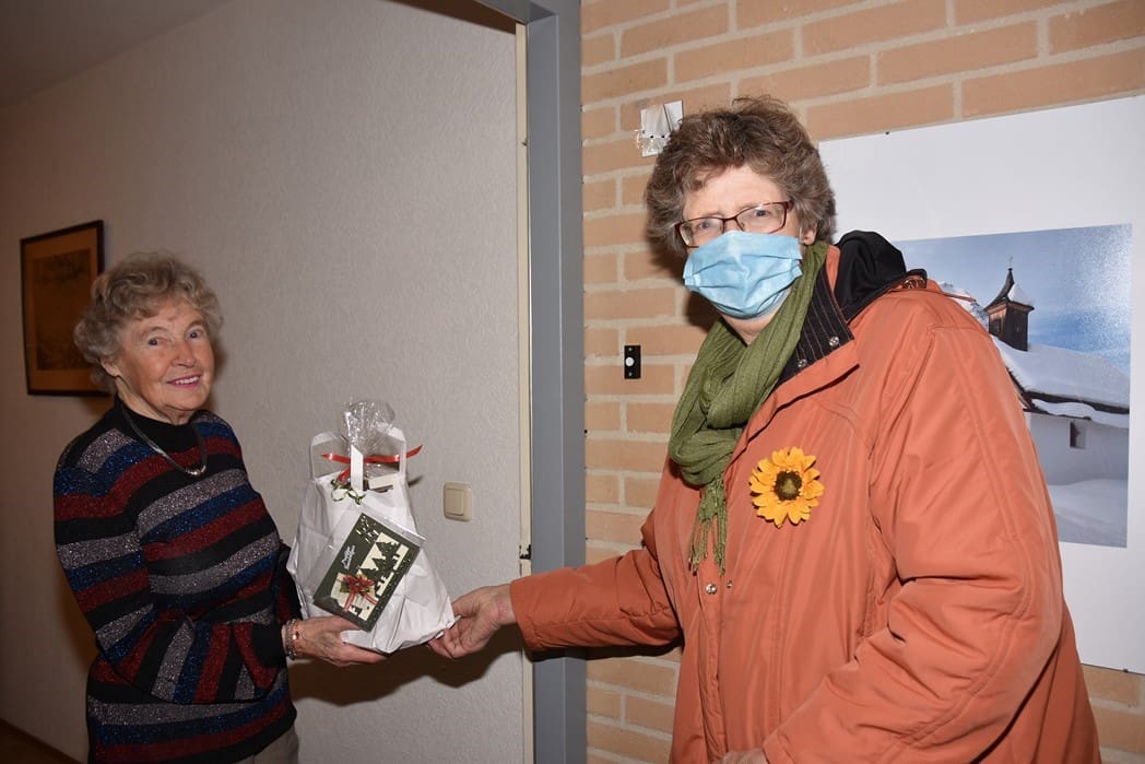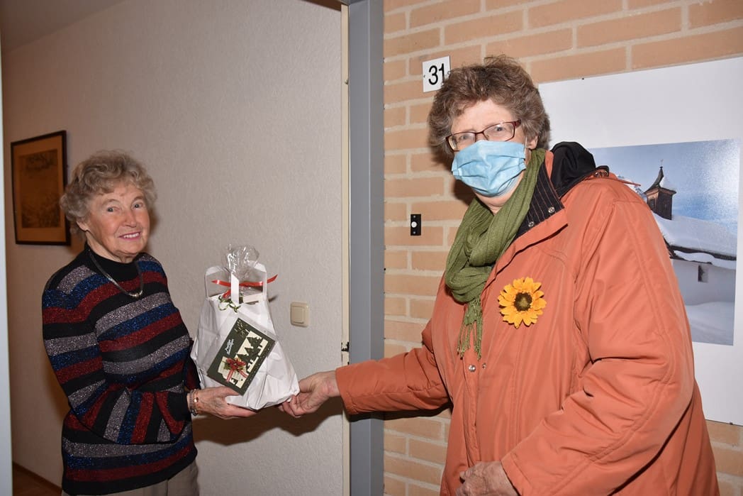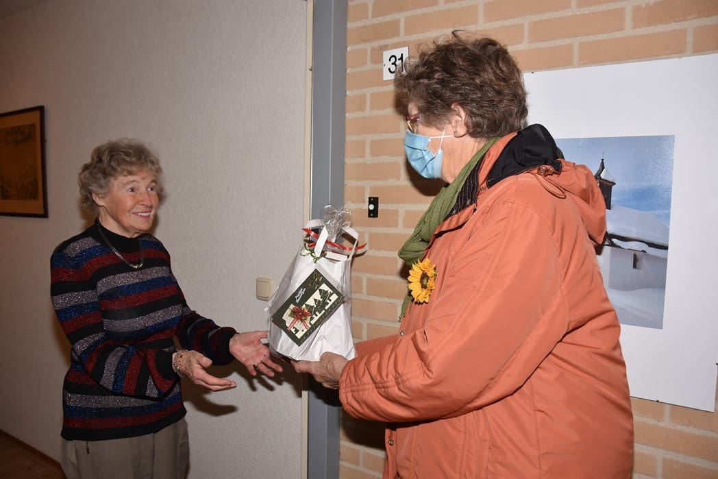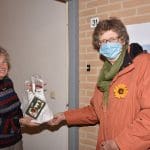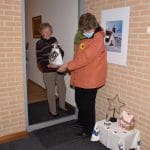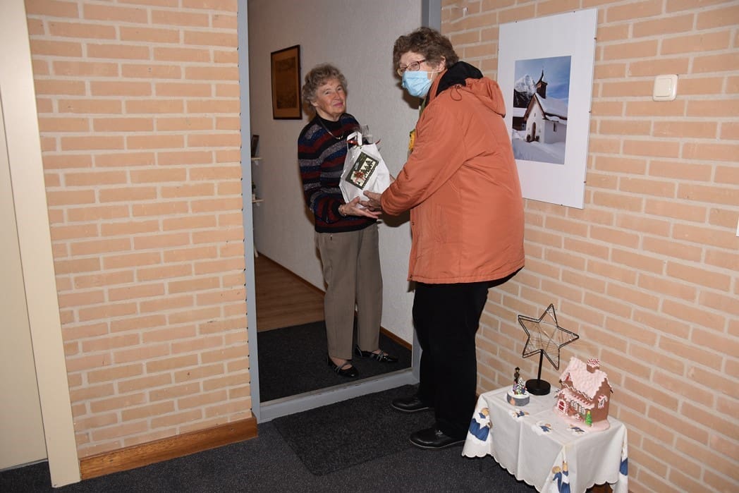 Mevrouw Bos was blij met het pakket en de aandacht van de Zonnebloem in deze toch wel saaie dagen door alle coronamaatregelen.