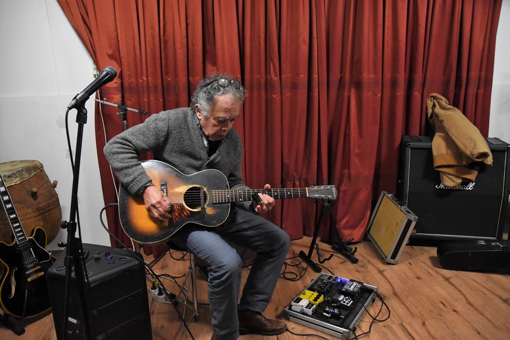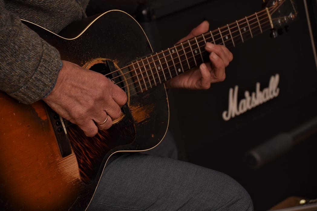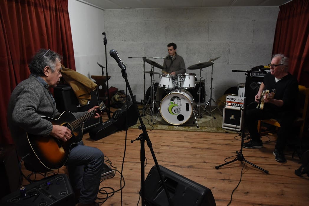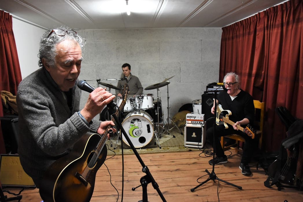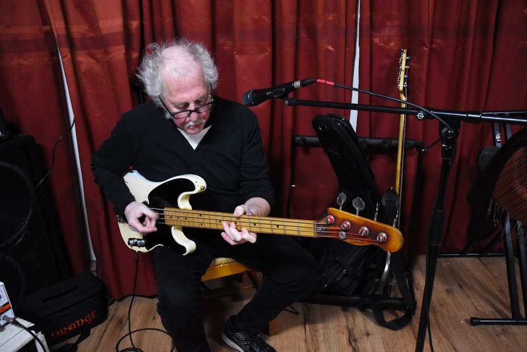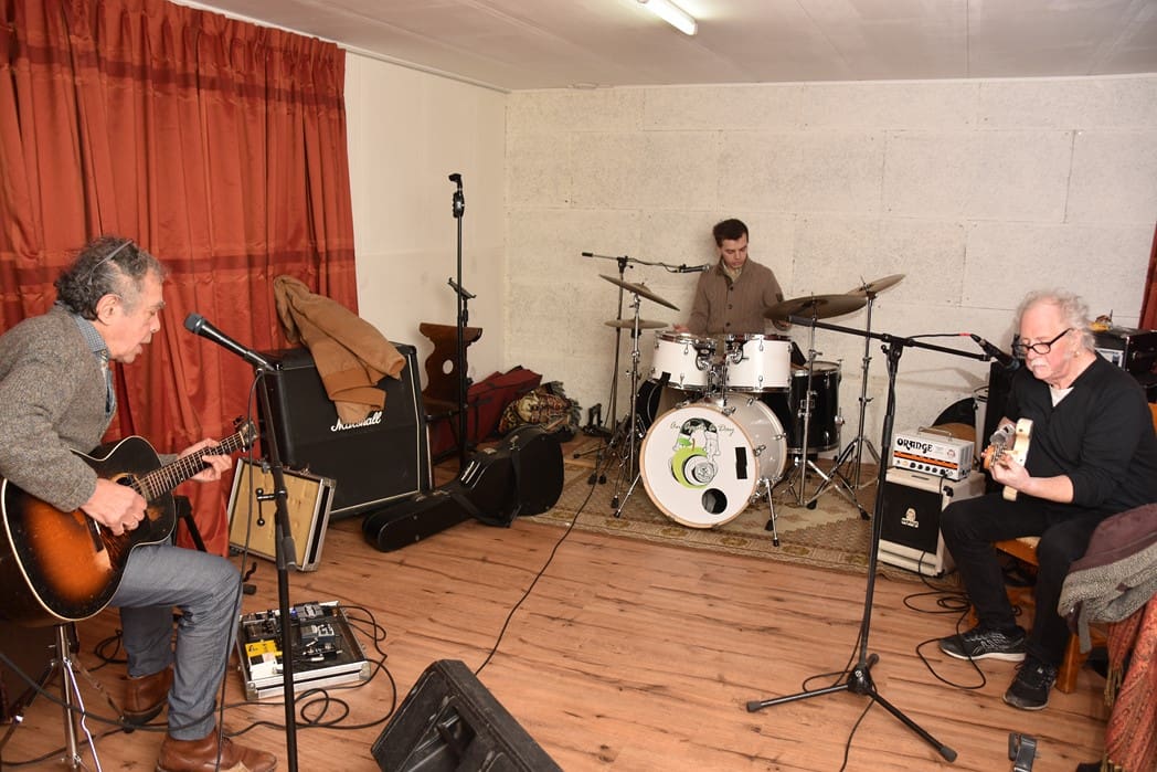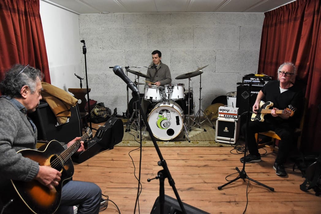 Normaal treedt Men in Blues elke zondagavond op in Café het Praethuys, vanwege corona is daar natuurlijk de laatste twee jaar weinig van gekomen. Vandaar dat er vanmorgen in een van de ruimtes van Hooidonk Audio gerepeteerd werd.