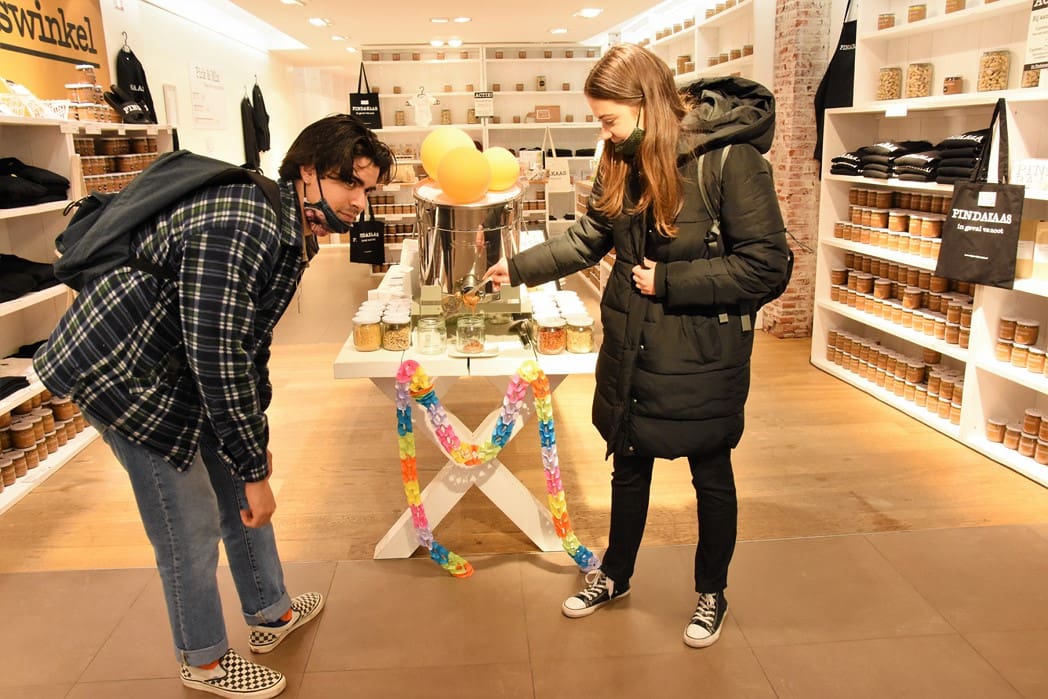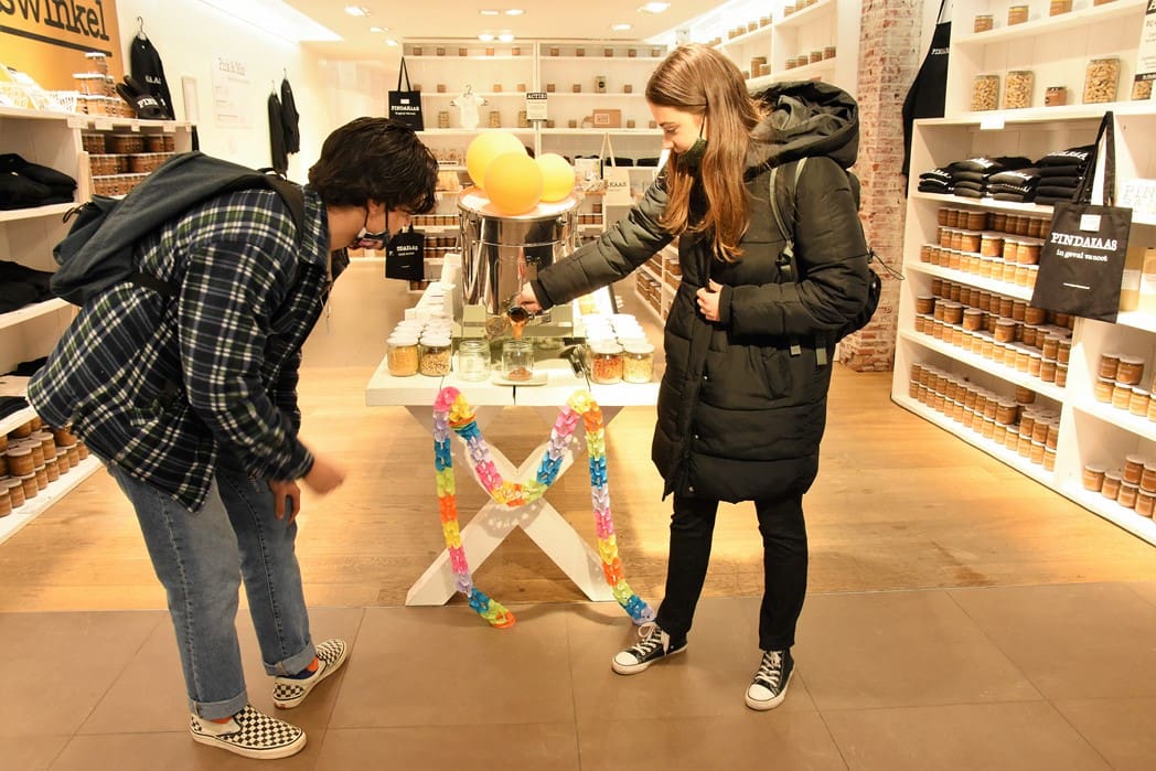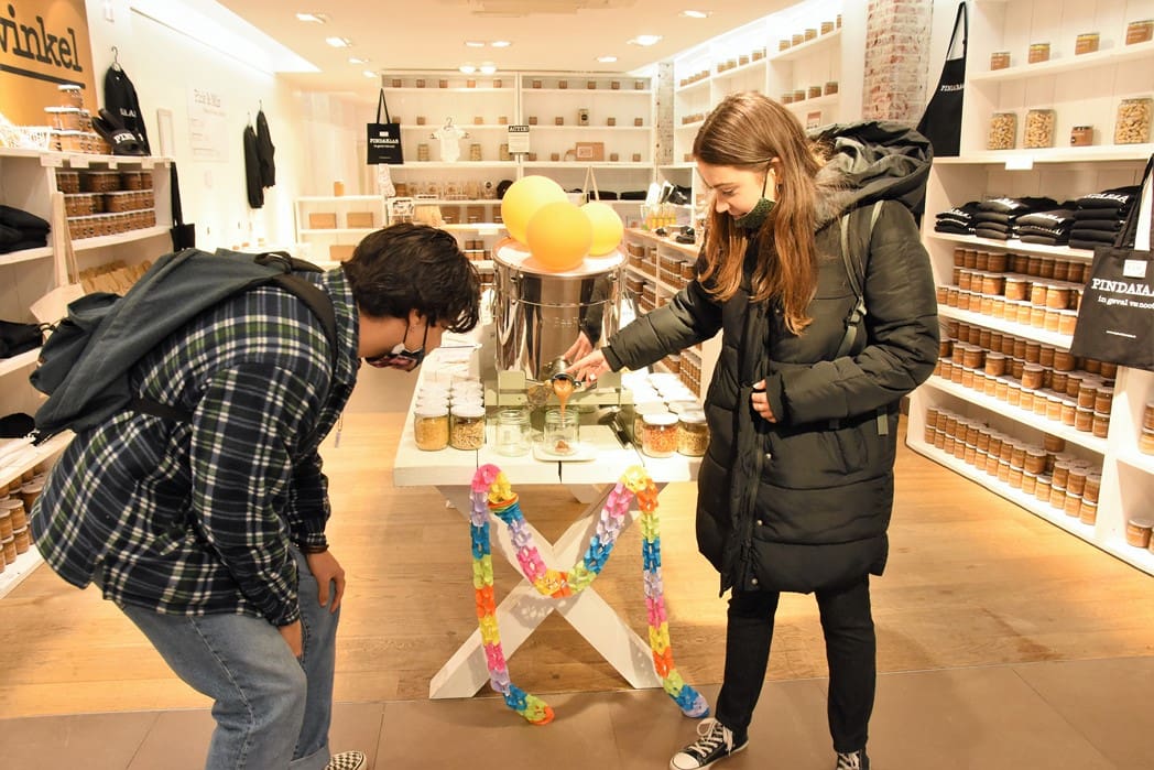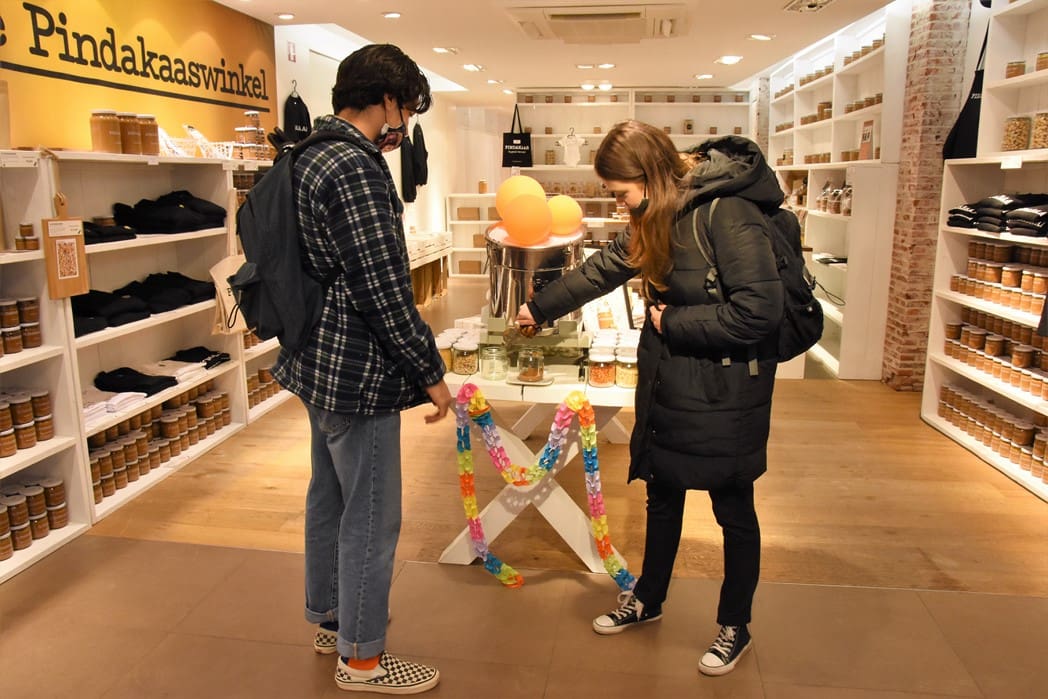 Deze week kan iedereen zijn eigen pindakaas samenstellen. Vaste klanten Justus en Tisha lieten zich dat geen twee keer zeggen en gingen gelijk aan de slag.