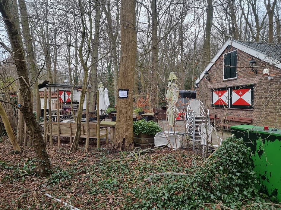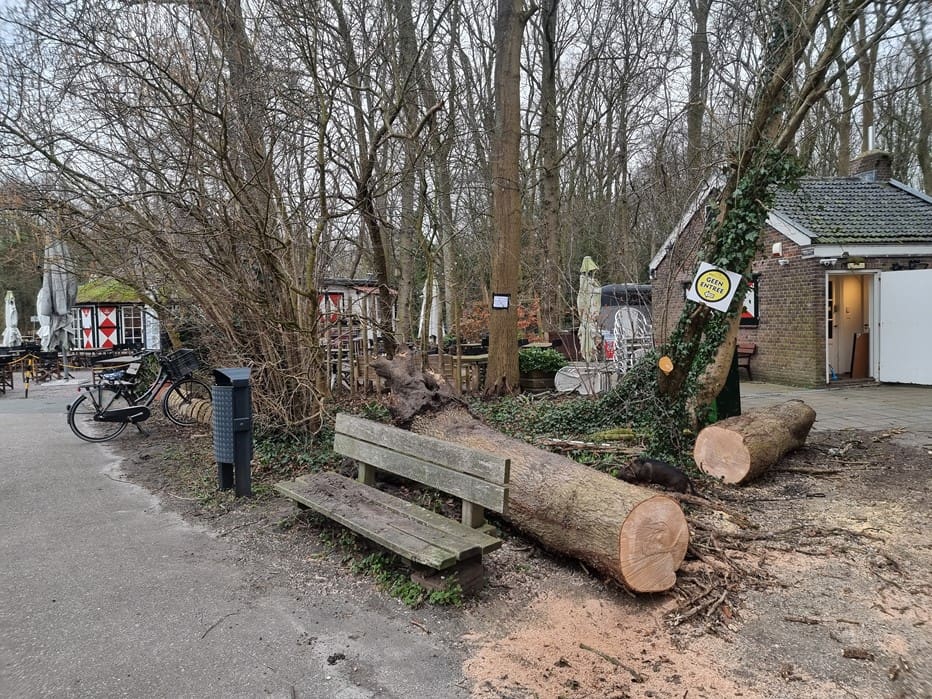 Bernard, eigenaar van het Theehuis, stuurde mij een foto van een van de bomen die nog wel overeind stond op het terrein van het Theehuis.