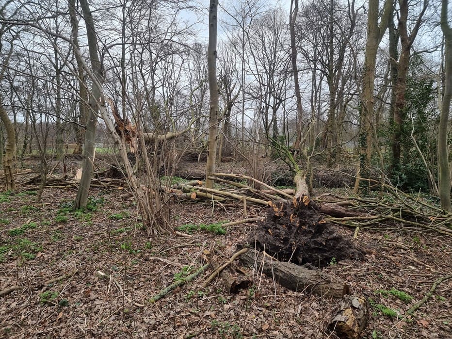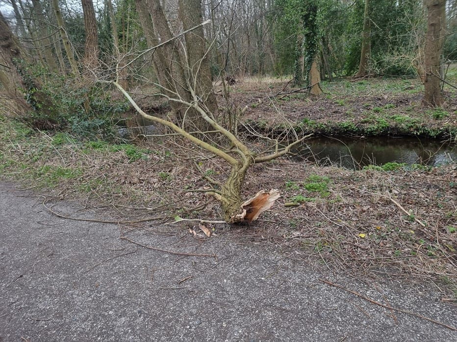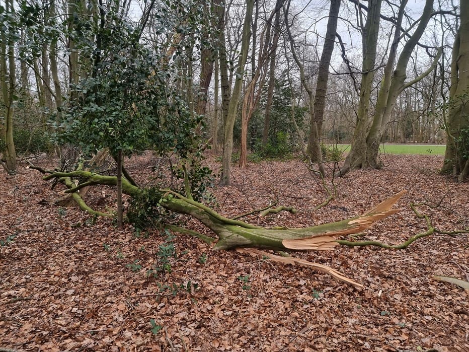 Storm Eunice maakte slagveld bij ingang De Leidse Hout en er volgt nog meer :-(