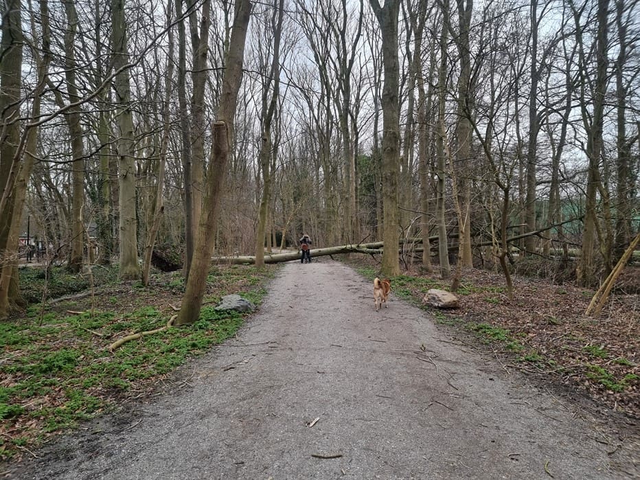 Wie vandaag via de Houtlaan De Leidse Hout binnenliep zag al snel dat storm Eunice het park niet vergeten was.