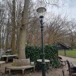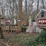 Hij viel de kant van de dierenweide op en heeft gelukkig geen dieren geraakt, hij had ook op het Theehuis kunnen vallen. Misschien dat dit eigenlijk de bedoeling van de gemeente is geweest. Het dak zou namelijk al in januari vervangen worden en als je er nu een boom op laat vallen is het een mooie stok achter de deur om te beginnen.  Nou ja stok achter deur,…. ik ben bang dat er geen deur meer is als er een boom op het dak valt.