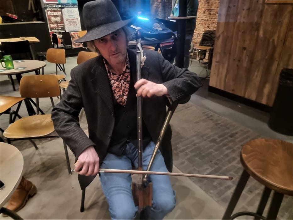 Er kwam een Leidse violist binnen met een ‘Phono Fiddle” prachtig instrument, nog nooit gezien.