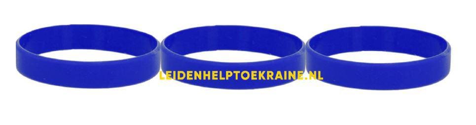 We hebben een partij van 10.000 blauwe polsbandjes kunnen bestellen, die op dit moment bedrukt worden met het adres van de website in gele letters.