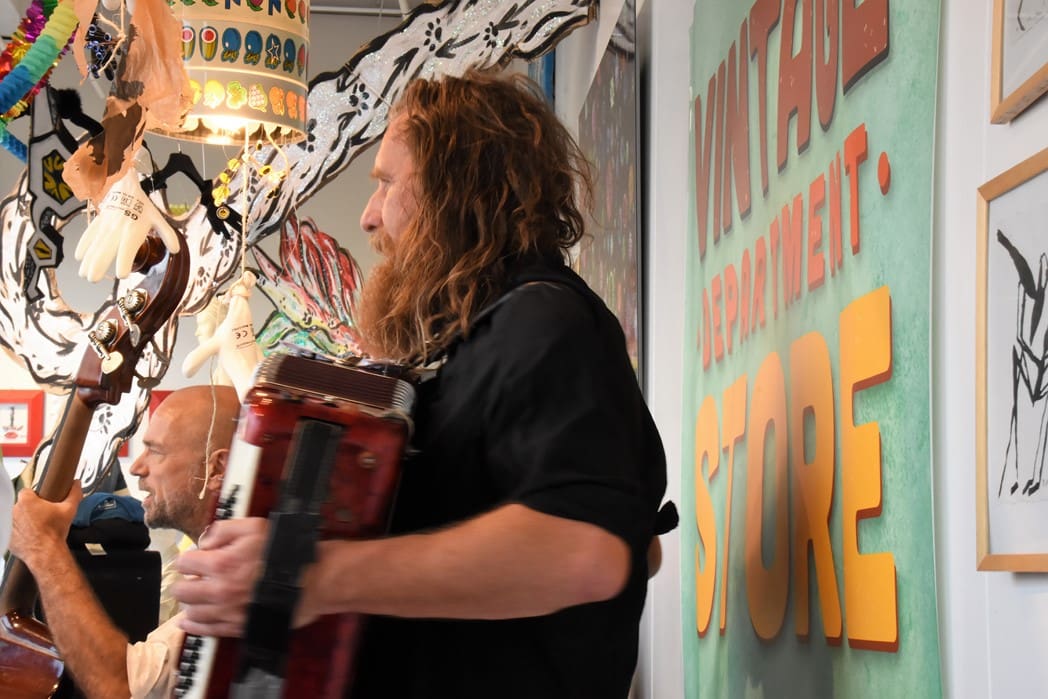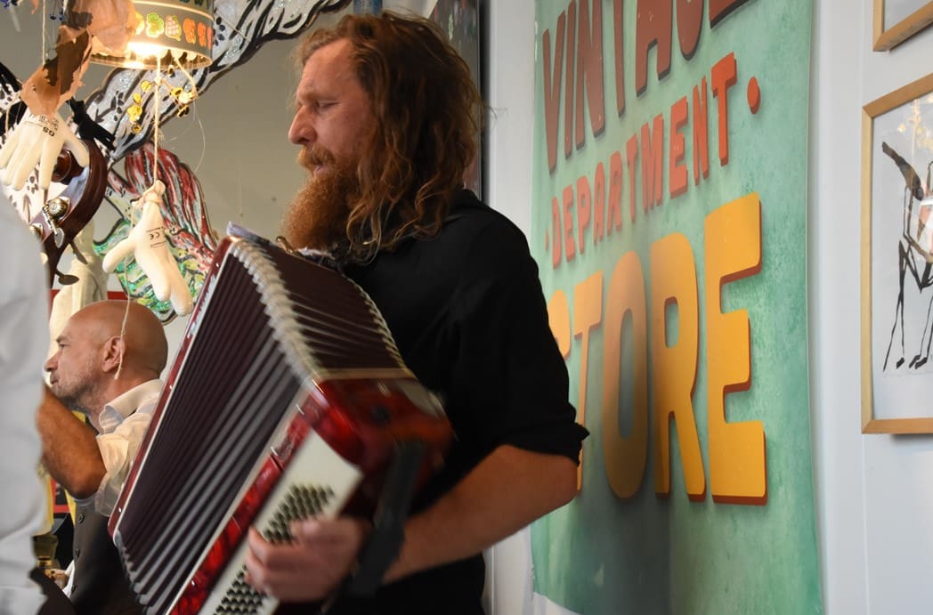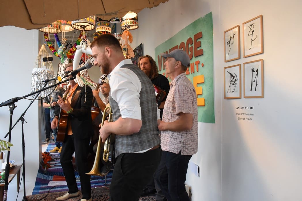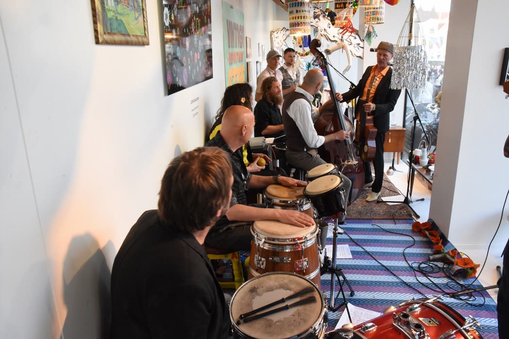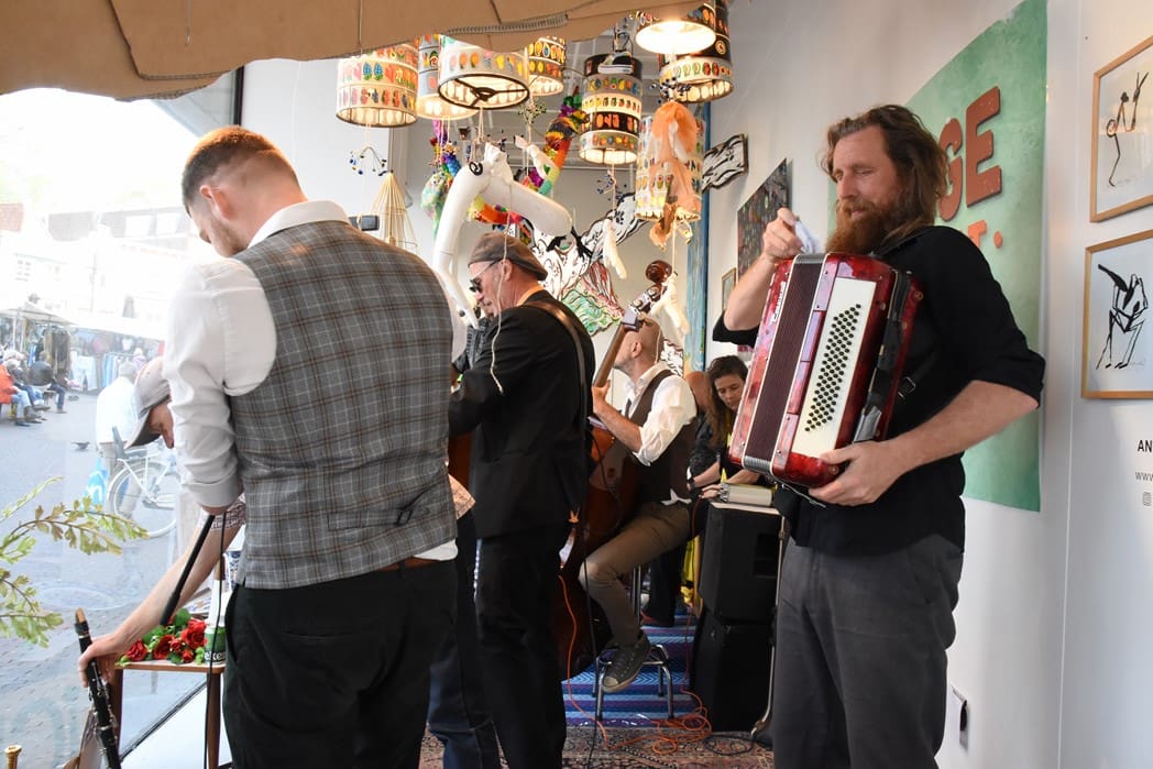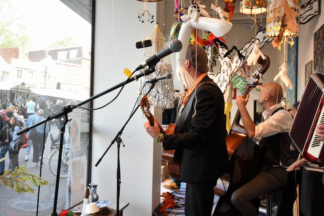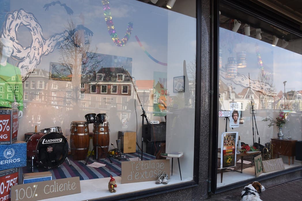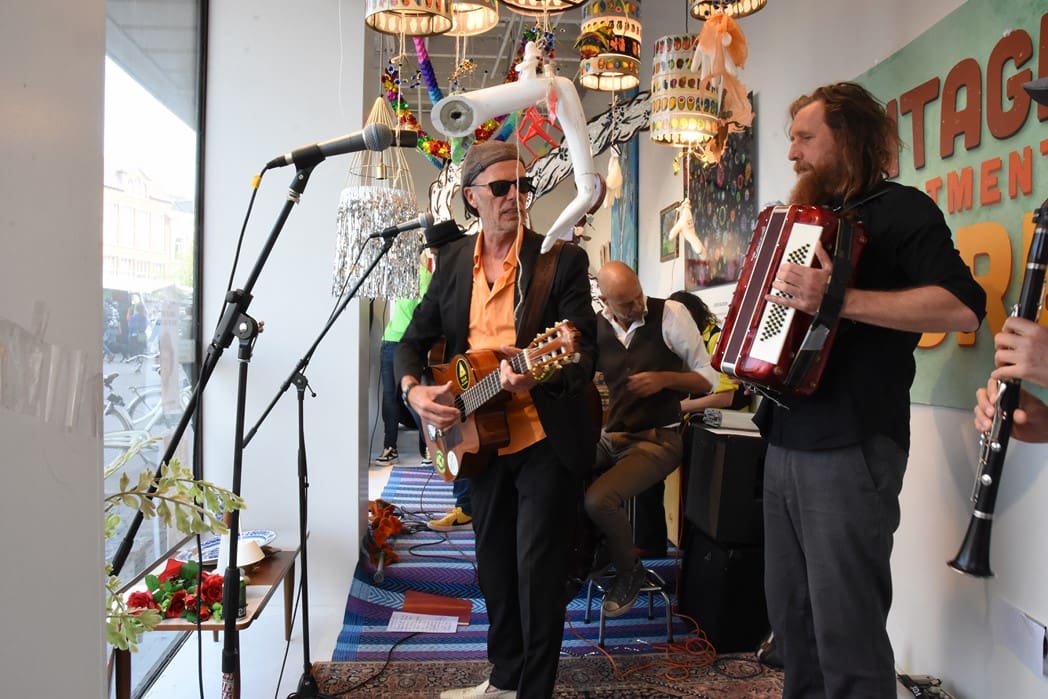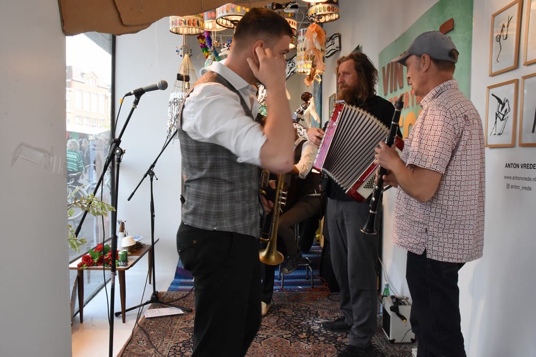 Het meest origineel gevonden vond ik de levende Bimbo Box in de etalage van de Vintage Department Store, het vroegere V&D. Het winkelend publiek keek al wat vreemd op waarom er muziekinstrumenten in de etalage stonden.
