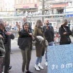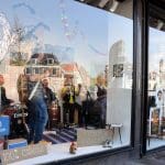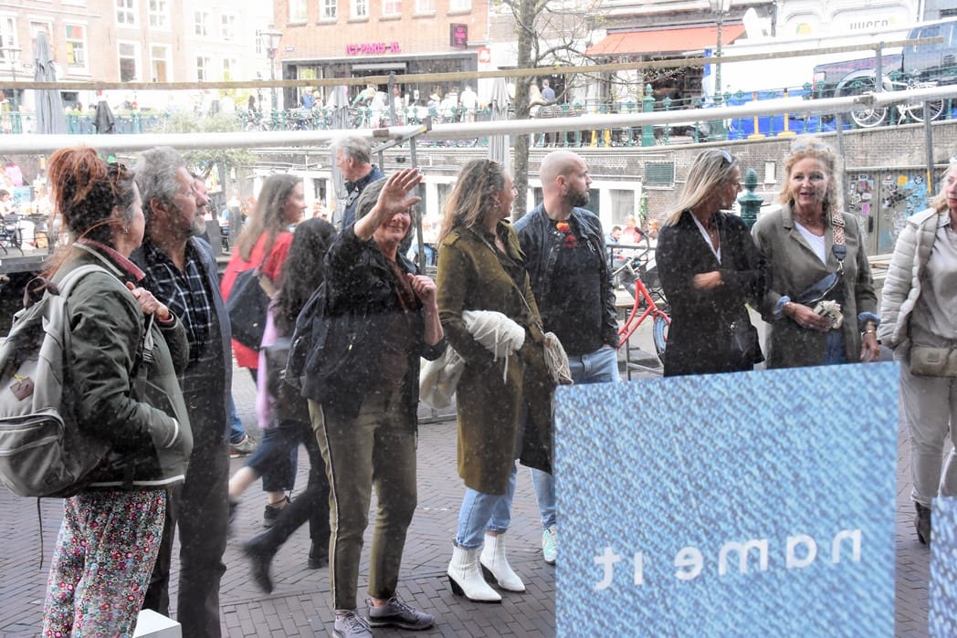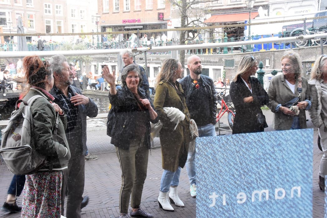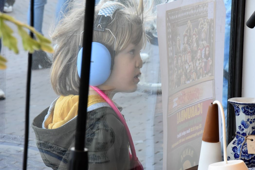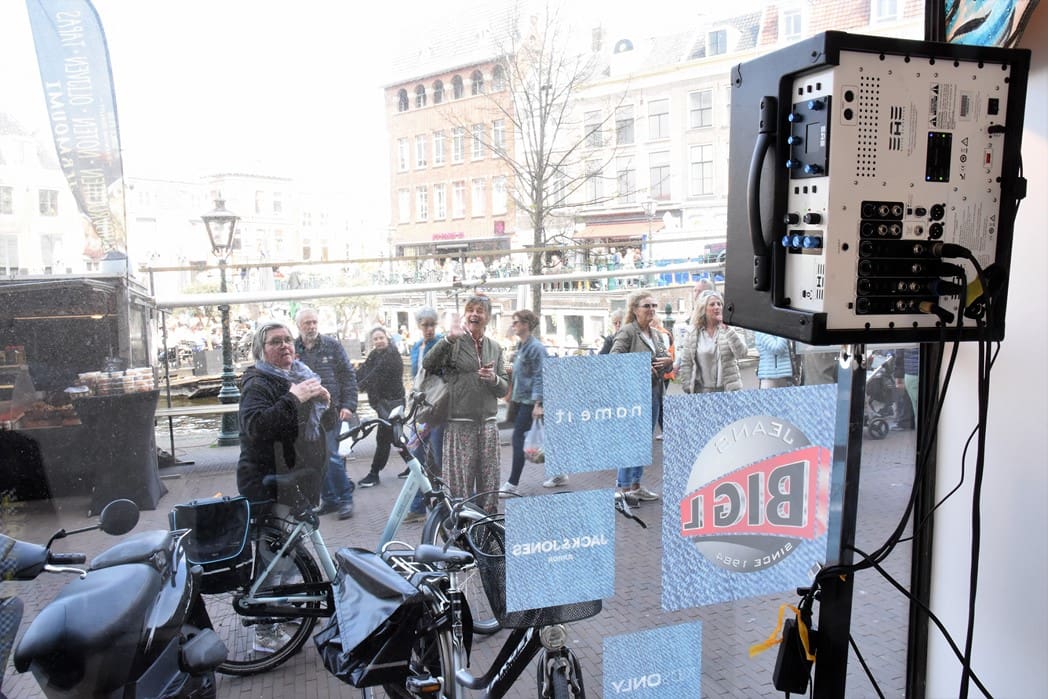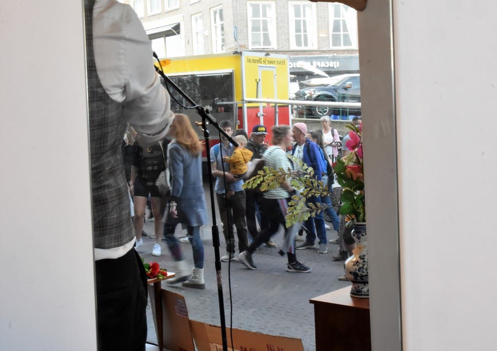 Ondanks dat het geluid vrijwel niet te verstaan was bleven er mensen voor het raam staan kijken.