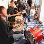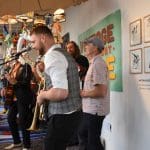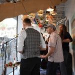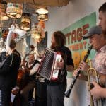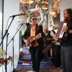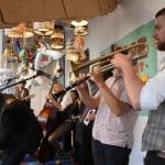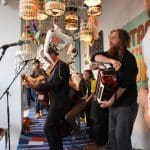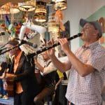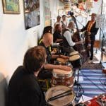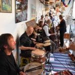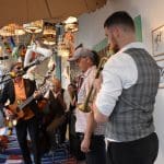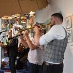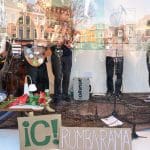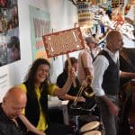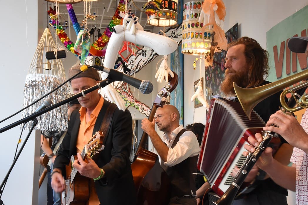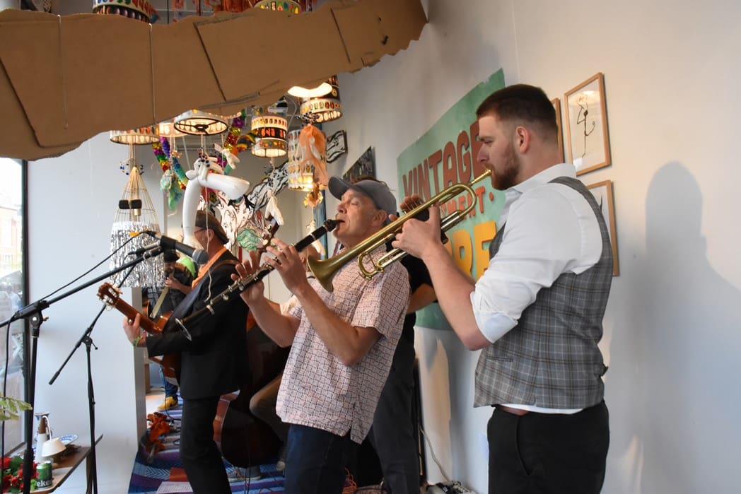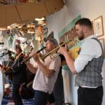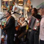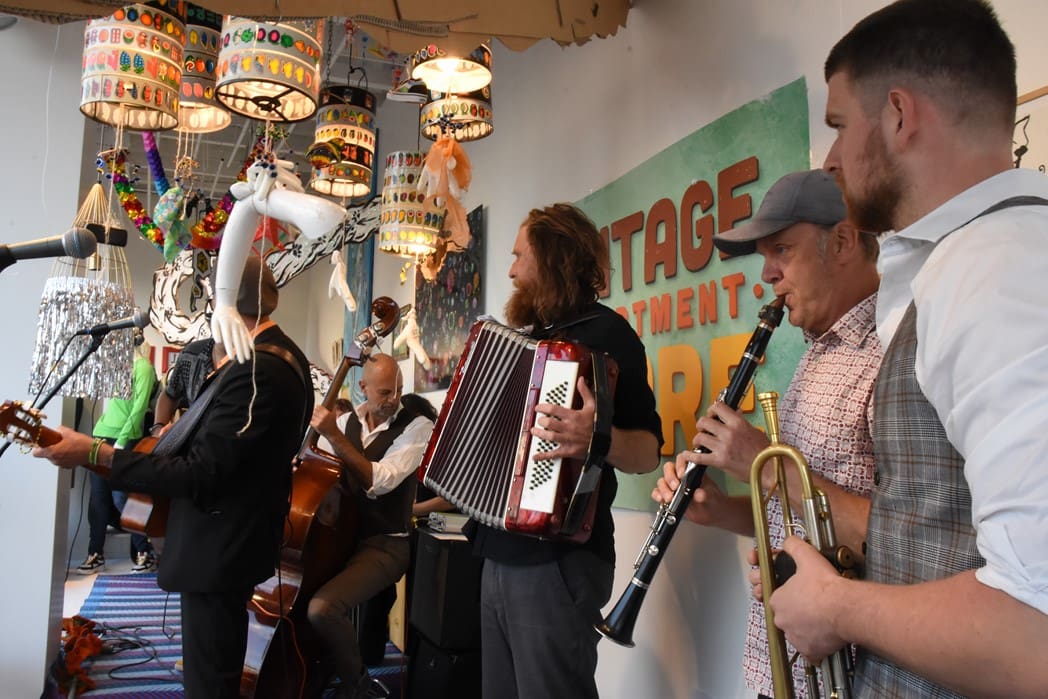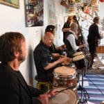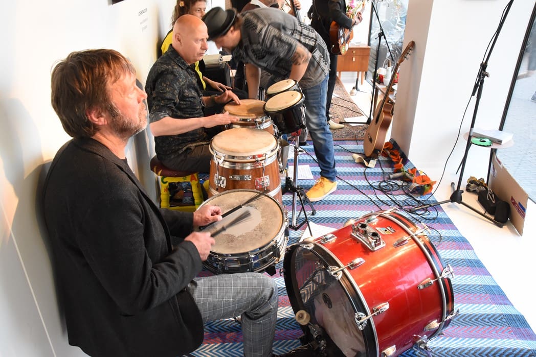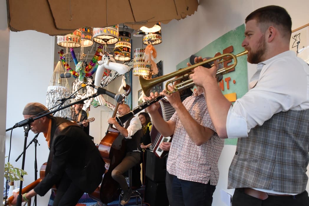 Om half vier stapten de leden van Banda Carumba de etalage binnen om een concert te gaan geven.