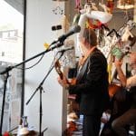 Buiten hing een kastje met gleuf om geld in te gooien en dat werd ook regelmatig gedaan. Het was een beetje jammer dat er geen box buiten stond want het geluid was buiten bijna niet te horen. Mocht er in de toekomst weer een band in de etalage spelen dan graag een box buiten zetten.