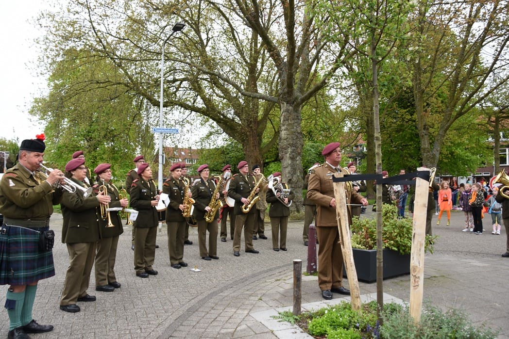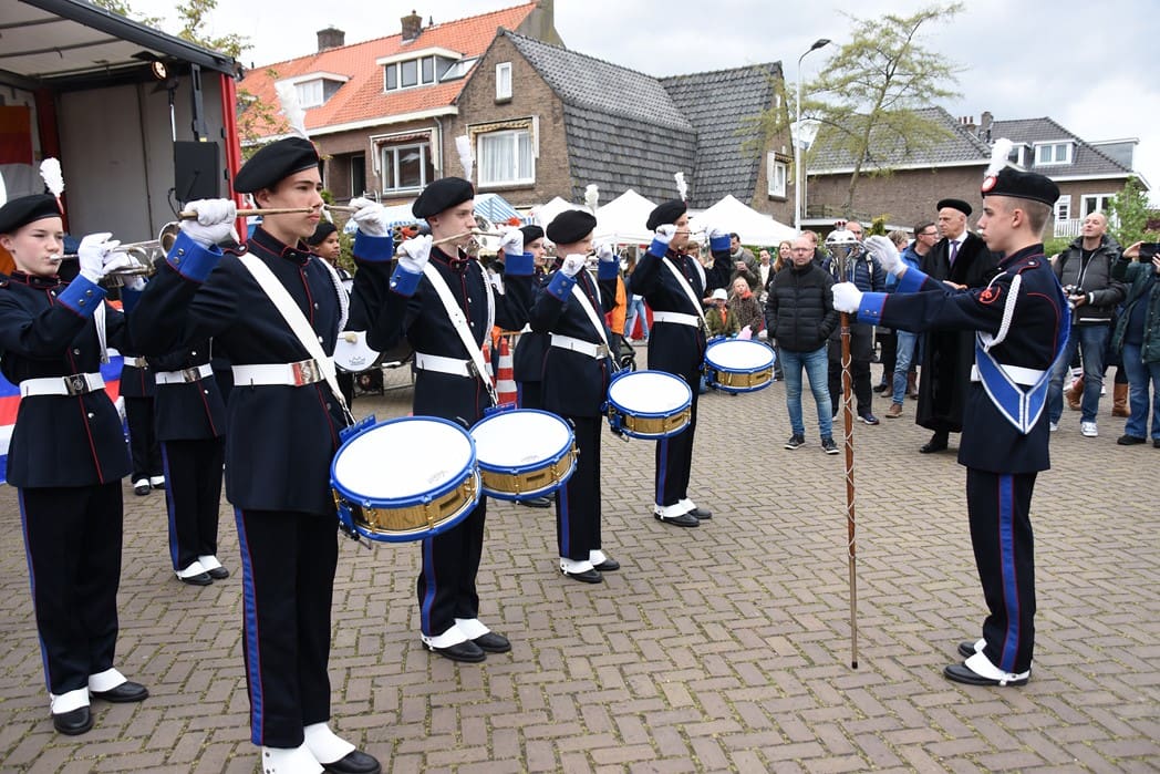 Ik vlieg door de dag heen en het beste is eigenlijk om het filmpje en de fotoslideshow onderaan te bekijken, die geven in een paar minuten tijd een goed beeld van de hele dag. We begonnen bij de Jacob Catslaan om de vlag te hijsen, laanbewoner Claas Griffioen had dit jaar de Band of Liberation geregeld om het Wilhelmus en het Leids Volkslied te spelen.