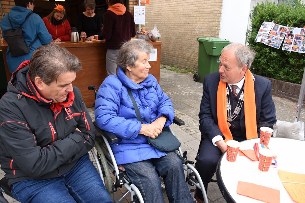 De Leidse zangeres Wies Cavé woont hier ook en zingt elk jaar nog voluit mee als haar nummers worden gezongen. Ze was aangenaam verrast met het bezoek van de burgemeester.