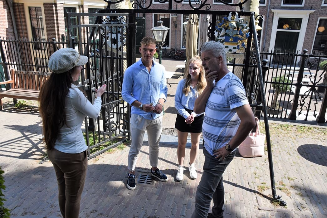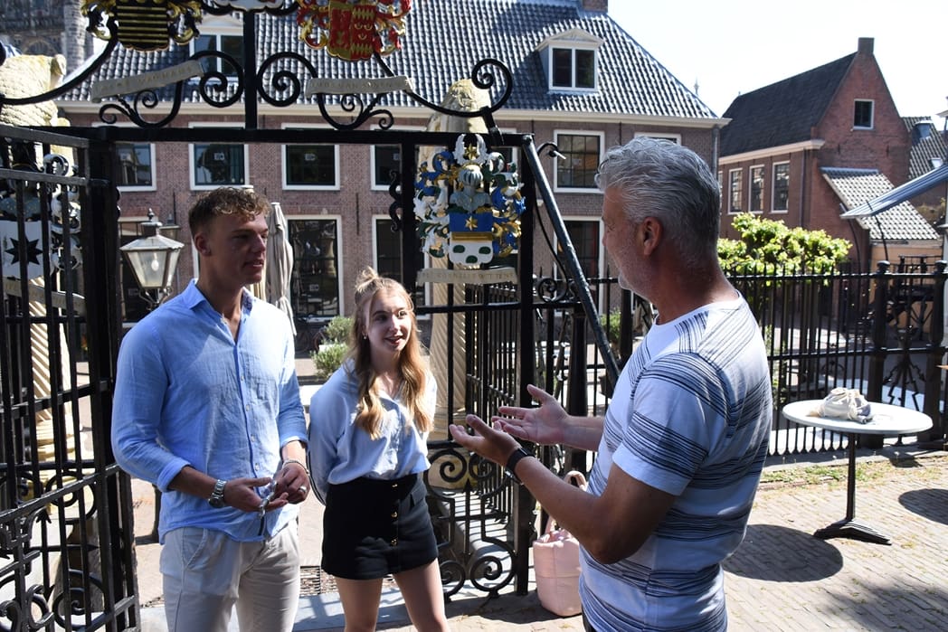 De fotograaf had nog wel even werk, maar er moesten ook opnames bij de Burcht gemaakt worden. Stefan was op zich niet nodig bij de buitenopnames dus gingen Ger en ik naar de Burcht. Er was een heel strak tijdschema want de figuranten kwamen om drie uur op het station aan en moesten echt om vijf uur weg. Lopen gaat veel tijd kosten en dan zie je weer hoe mooi Leiden is. Een telefoontje naar Jan en Rob van het Stadsparkeerplan was voldoende om de figuranten op te laten halen bij het station en ons van de Schouwburg naar de Burcht te laten brengen.