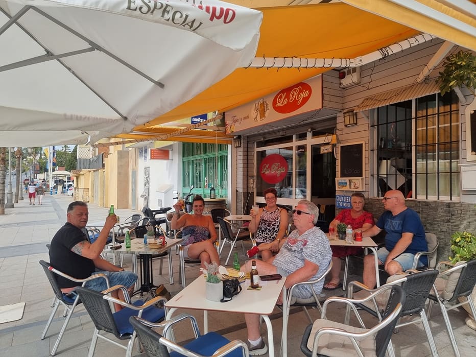 Vlak naast ons appartement hebben Bianca en Chris café La Roja. Regelmatig ’s middags even een biertje gepakt en een praatje gemaakt met bijvoorbeeld Marco en Jootje.
