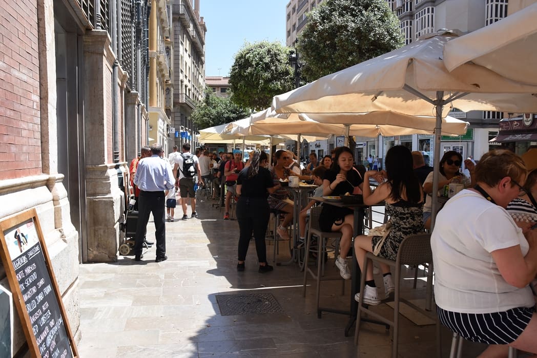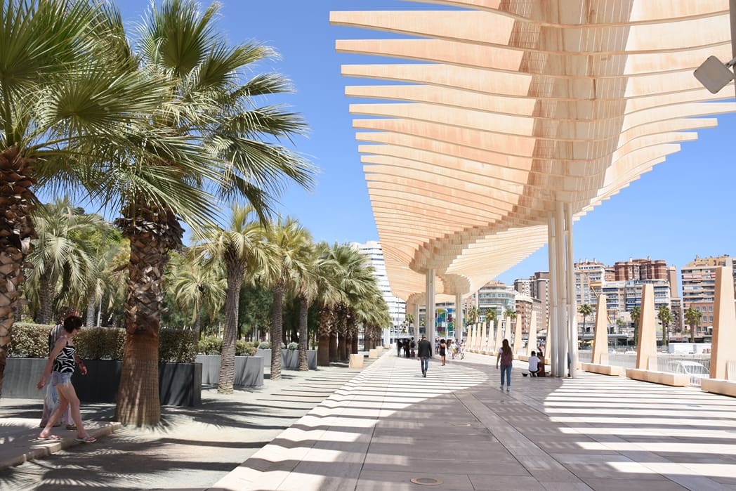 Zelfs op de boulevard bij de haven van Malaga was geen verkoeling.