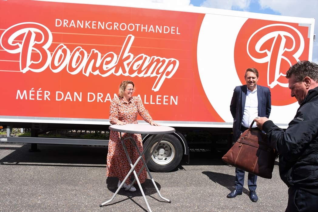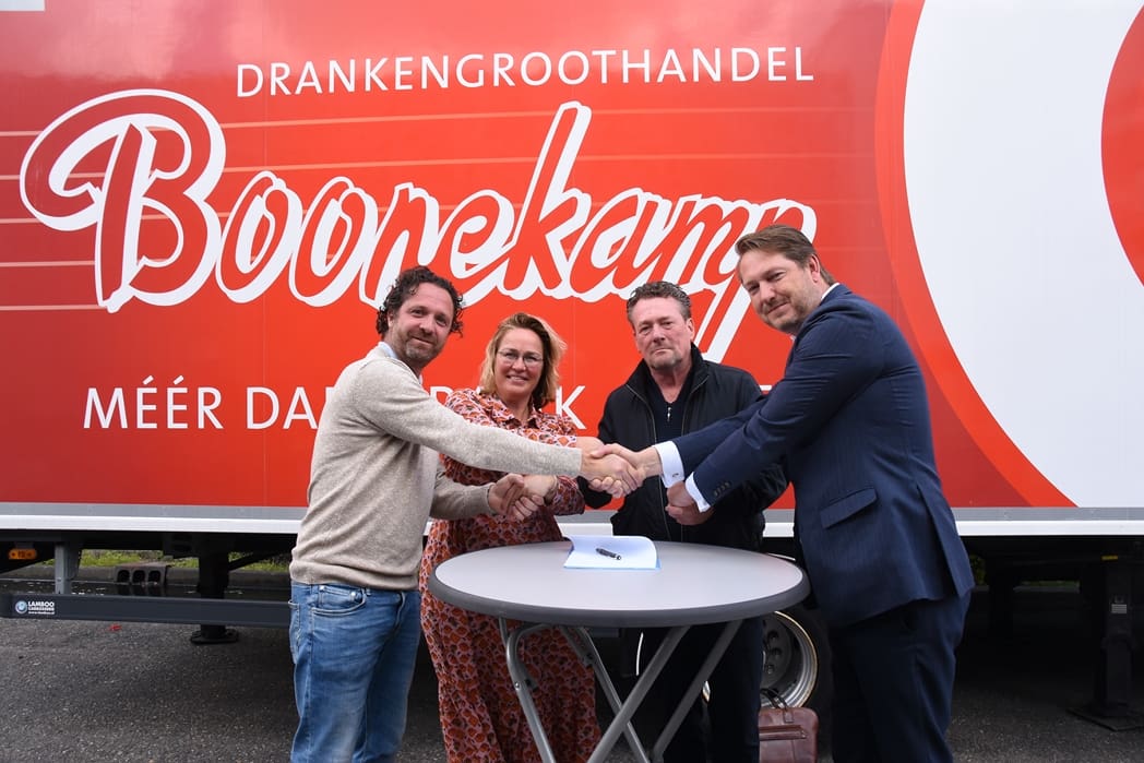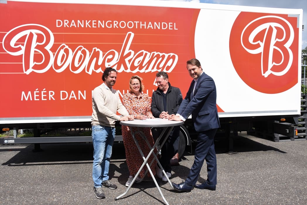 Niet alleen het publiek en de organisatoren kijken uit naar alle komende festivals en evenementen, ook bij Boonekamp Drankengroothandel begint alles weer op gang te komen. Eerlijk is eerlijk het waren natuurlijk twee Kl… jaren, waarbij de groothandel zo goed als stil stond. Ondanks alle tegenslagen is Boonekamp toch weer sponsor bij vele evenementen en festivals. Ik vroeg mij af of dat wel kon na alle ellende. Ach joh het ligt achter ons, we leven nog en vooral we vinden al die festivals zelf zo leuk lachte Sabine Boonekamp toen ze deze week het contract met Stadsfestival de Lakenfeesten en Het Singelpark diner tekende. Ook bij het ondertekenen van het contract werd weer duidelijk hoe blij iedereen is dat we weer kunnen gaan genieten van alle evenementen deze zomer. Zowel Nilles Raken, organisator Stadsfestival De Lakenfeesten, als ook Thijs Hemmes en Rob van Marwijk van  het Singelpark Diner verwachten dat dit daverende Lakenfeesten gaan worden.Voor Sabine Boonekamp en haar team is dit het begin van een lange en drukke festivalzomer. Ze werken pak’m beet in de driehoek  Rotterdam, IJmuiden en Utrecht.  Behalve de Lakenfeesten  zijn ze ook sponsor van bijvoorbeeld Werfpop in De Leidse Hout, Puur Festival in park Landskroon en Trekkertrek Familiedag in Koudekerk.Ik loop wel vaker even binnen bij Boonekamp en het valt me altijd weer op hoe lekker iedereen samenwerkt, het is wat dat betreft duidelijk echt een van oudsher familiebedrijf.