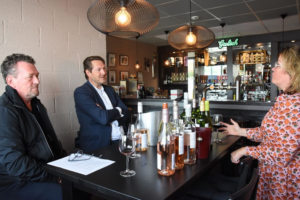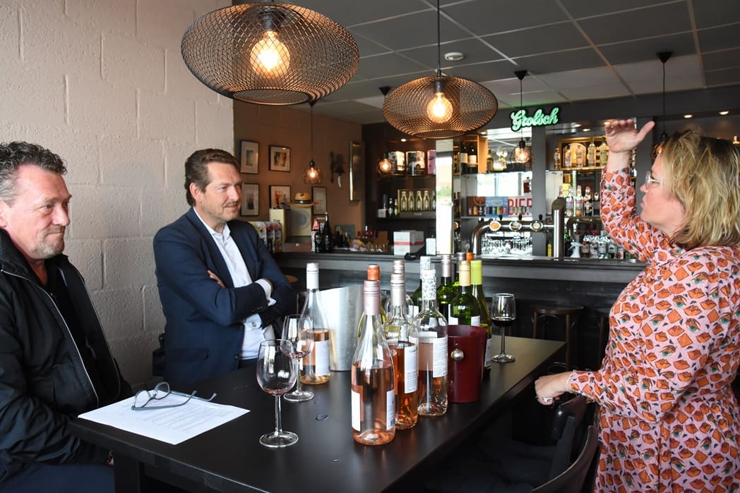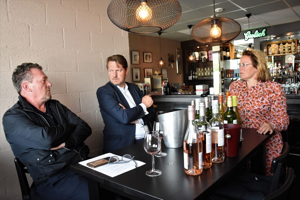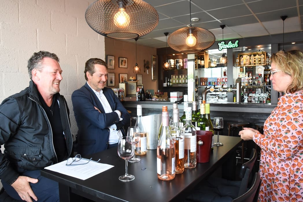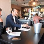 Na het ondertekenen van de contracten werd de wijn uitgekozen die tijdens het Singelpark Diner geschonken gaat worden. Ik dacht ik maak even een foto alsof er aangewezen wordt wat er mee gaat of zoiets. Nou maak die foto maar niet, hier druipt echt het in scène zetten en poseren vanaf 🙂
