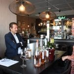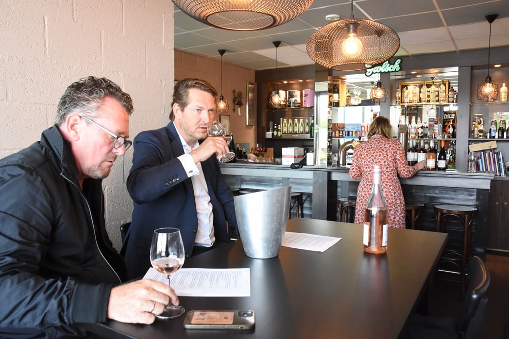 Wijn kan je natuurlijk niet uitzoeken zonder te proeven, vandaar dat we naar de bar boven het magazijn gingen. De flessen en glazen stonden al klaar.