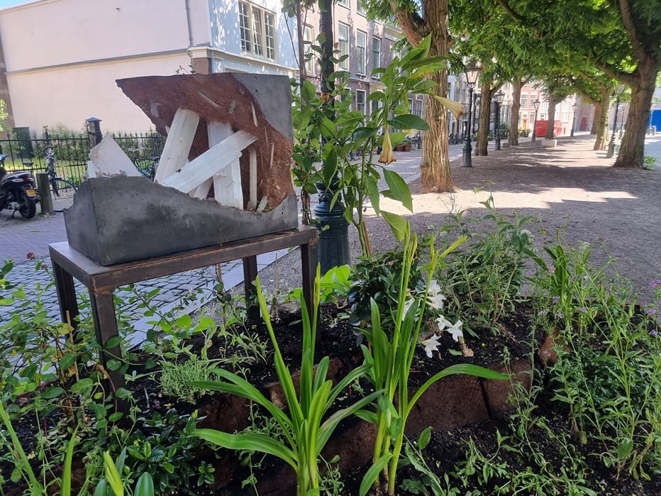 Het laatste kunstwerk staat op de andere kop van de Hooglandsekerkgracht.