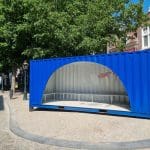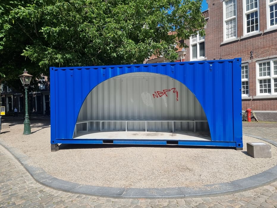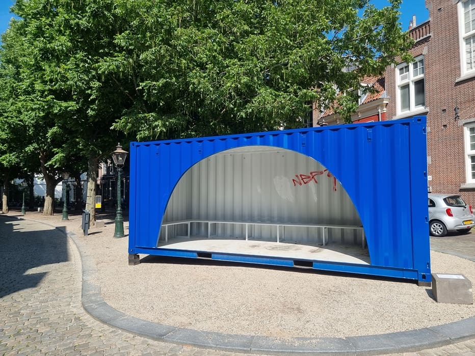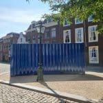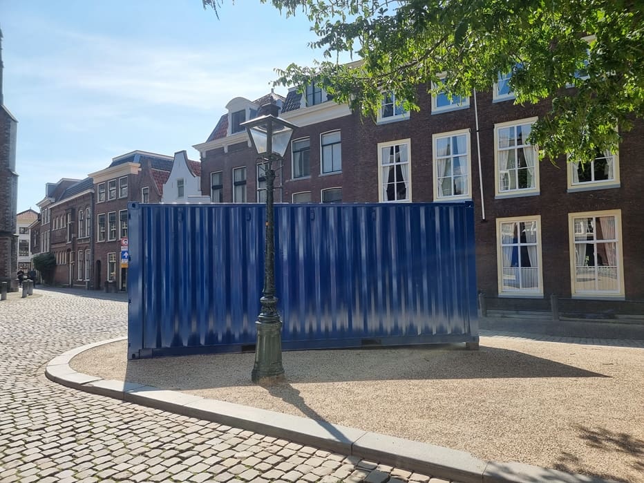 Ik liep even langs de kunstwerken en snapte dat er wel duidelijk een bedoeling mee is. Wil je meer weten over de bedoeling van deze editie en de kunstwerken kijk dan op de pagina onder deze link. Op de kop van de Hooglandsekerkgracht staat deze opengewerkte container.