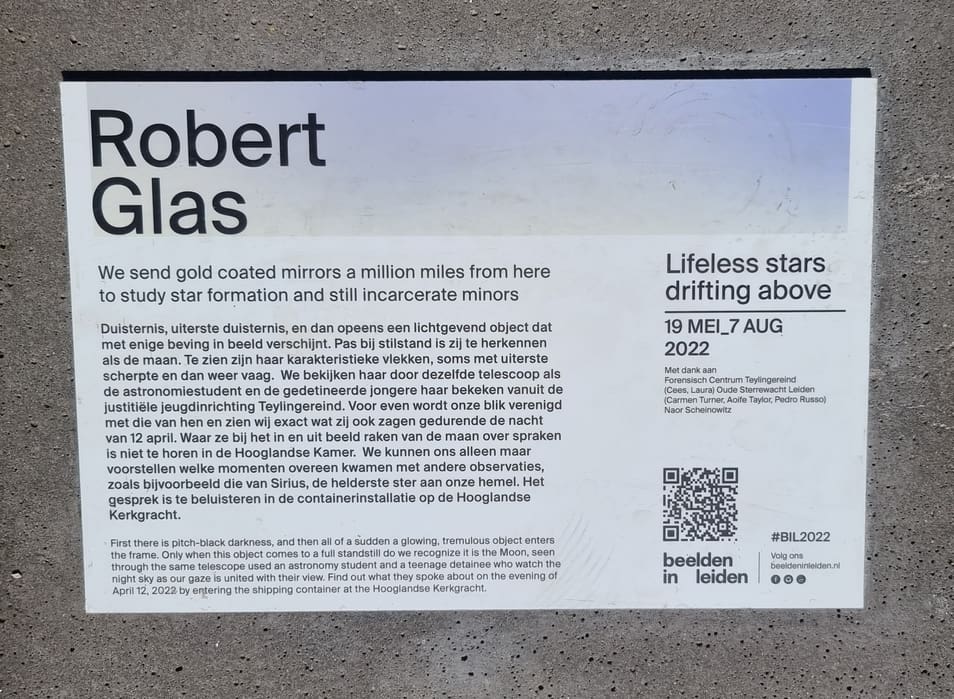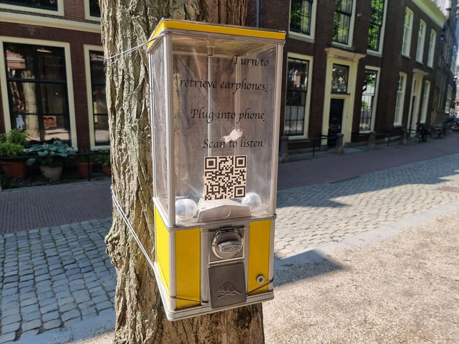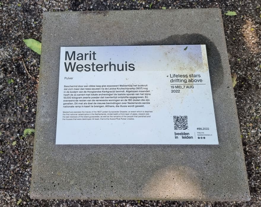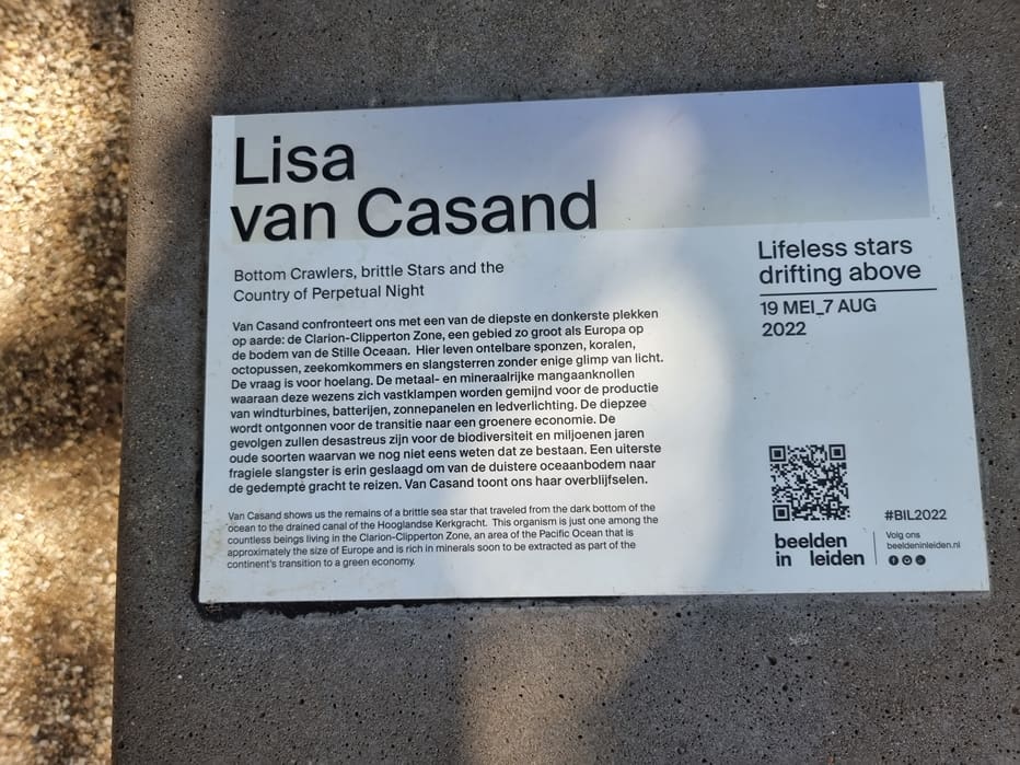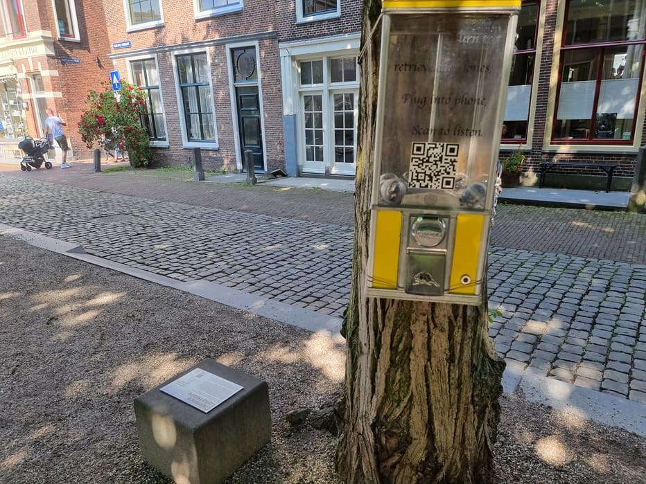 Dit kunstwerk snap ik nog steeds niets van. Volgens de uitleg moet je de code scannen om een verhaal te horen. Ik heb gescand en kreeg een reclame om naar Goeree Overflakkee te komen. Ik dacht dat Beelden in Leiden mensen naar Leiden moet trekken en niet naar Zeeland moet sturen 🙂