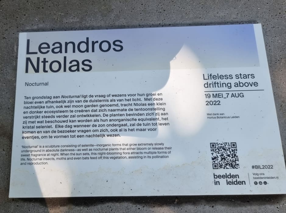 Het bordje naast het kunstwerk geeft ook weer uitleg over de kunstenaar.