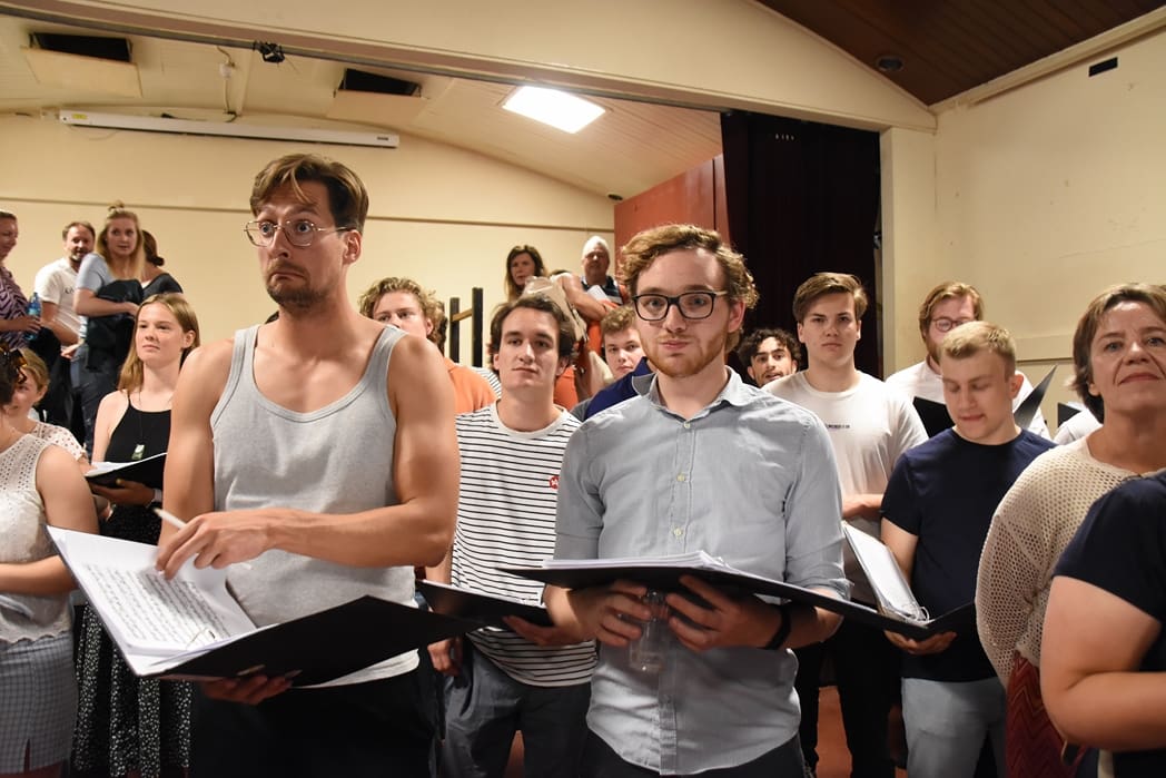Een paar artiesten zoals Mart Hoogkamer en Lo van Gorp hadden al eerder gerepeteerd. Gisteravond was het de beurt aan Ray Benjamin, het koor van Sempre Cresendo en Musicalgezelschap Otis.